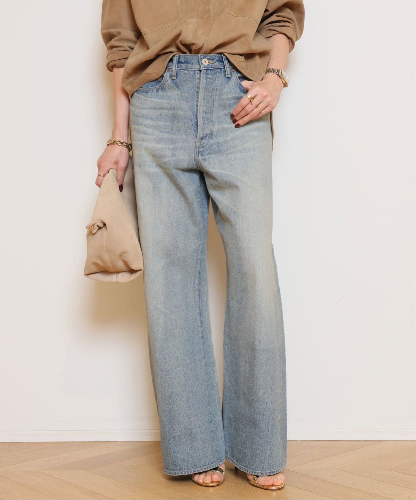 色褪せた淡いブルーがムードを漂わせ、インパクトのあるワイドシルエットは穿き込むほどに身体になじんでいきます。