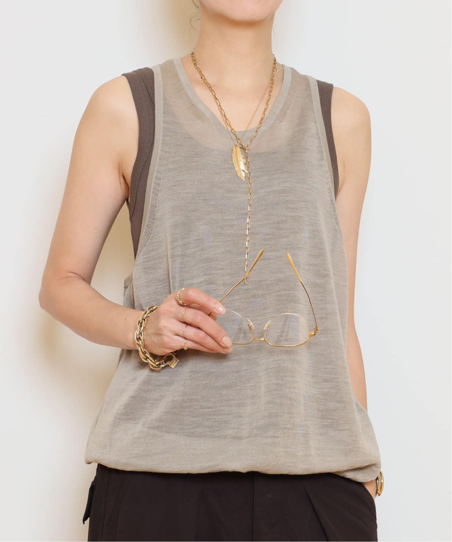レイヤードを楽しむ、HERILLのタンクトップ。