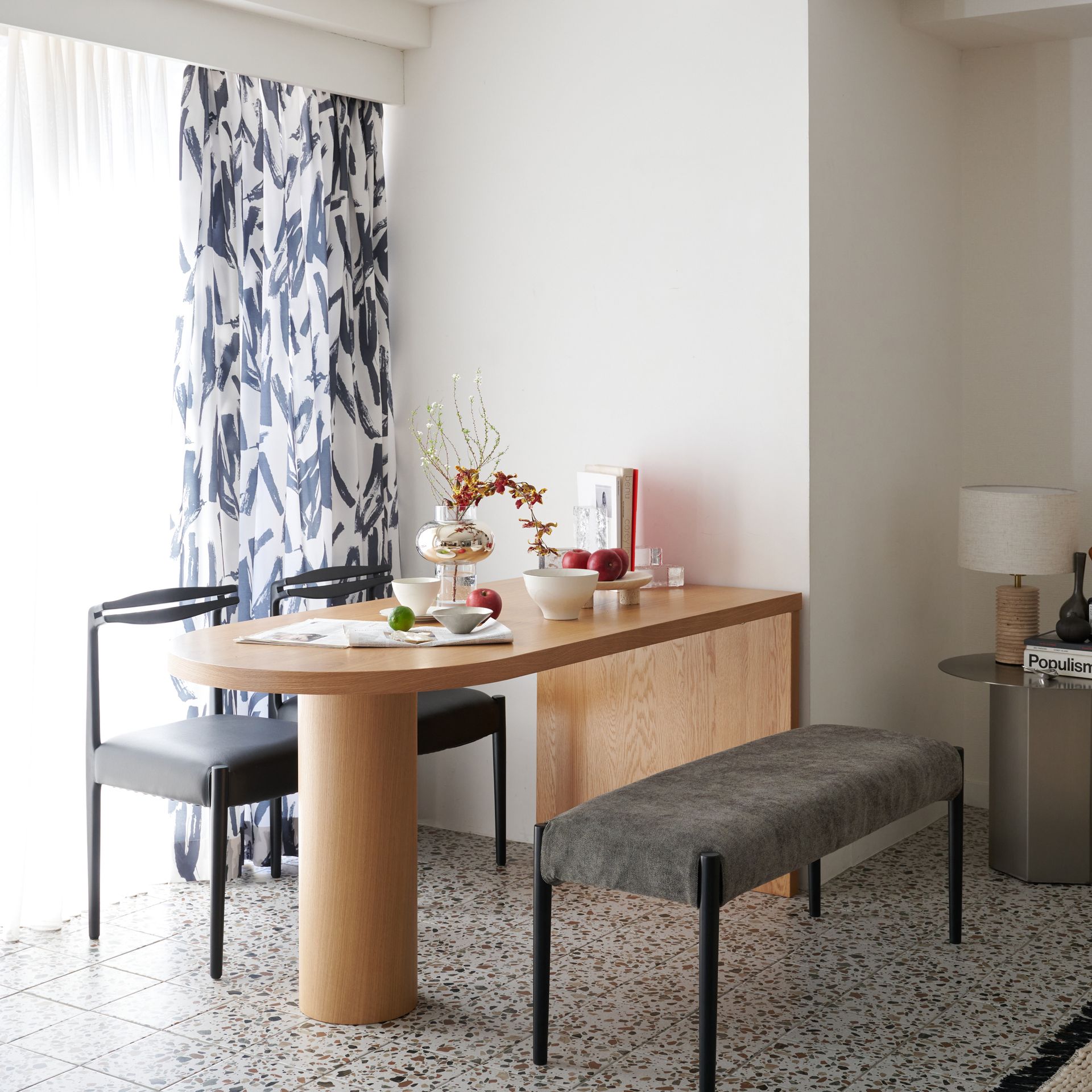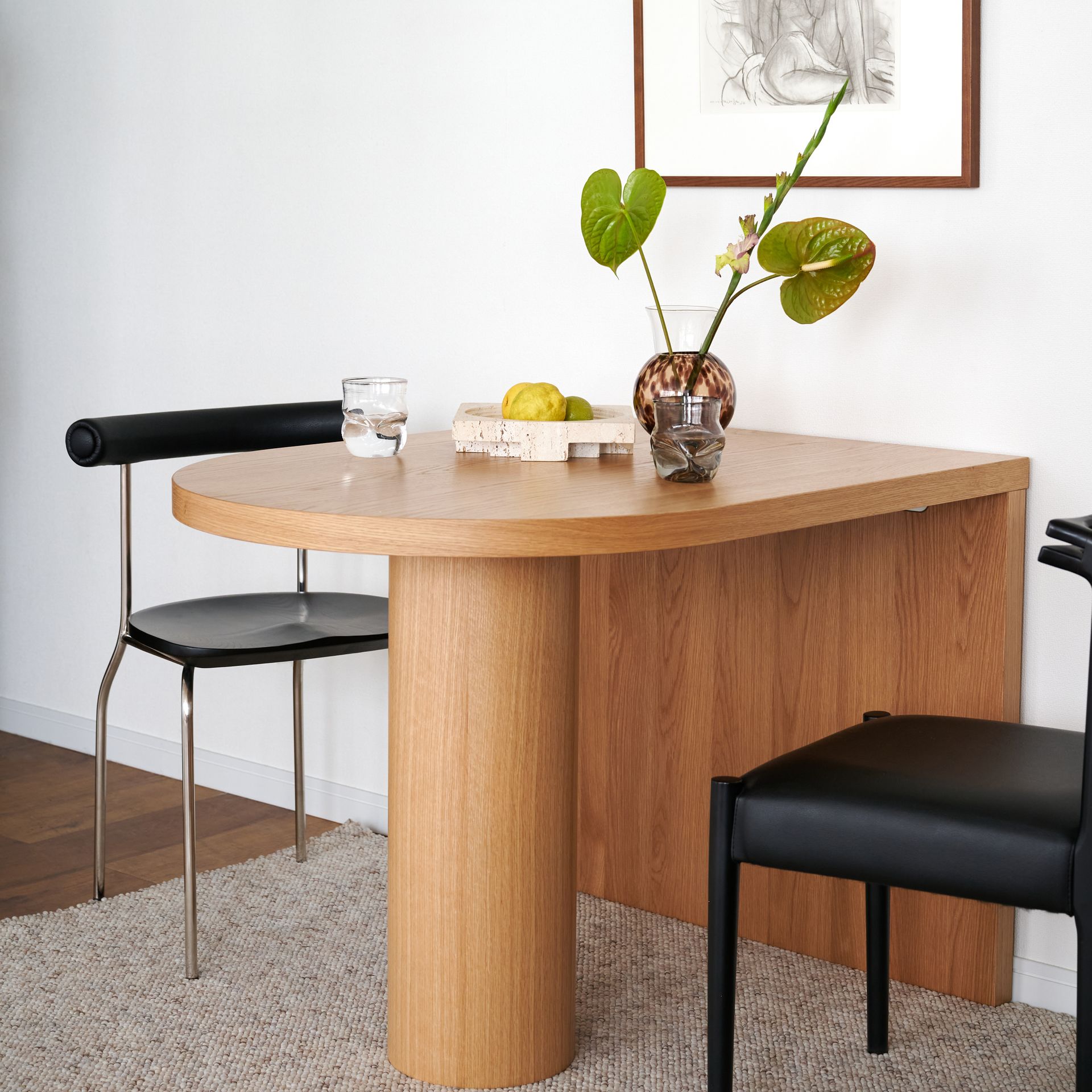 ペニンシュラ型の天板と、安定感のある円柱脚が特徴的なデザインで人気のPORTOダイニングテーブル。