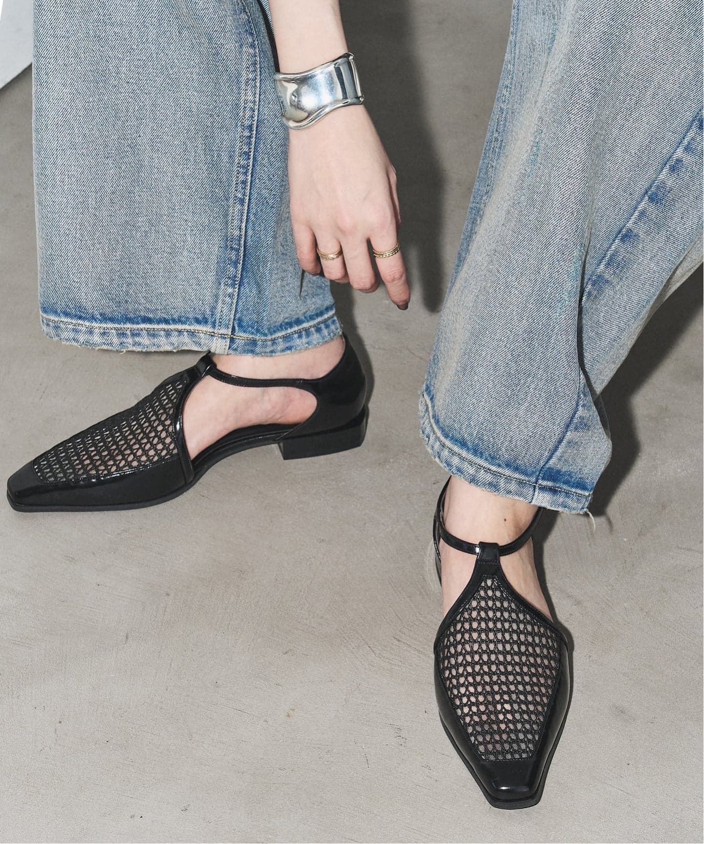 素材感と柄で遊びを出した抜け感のあるフラットシューズ。