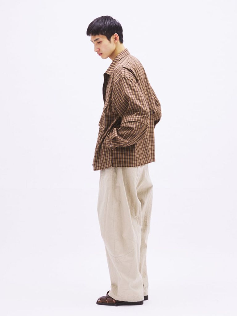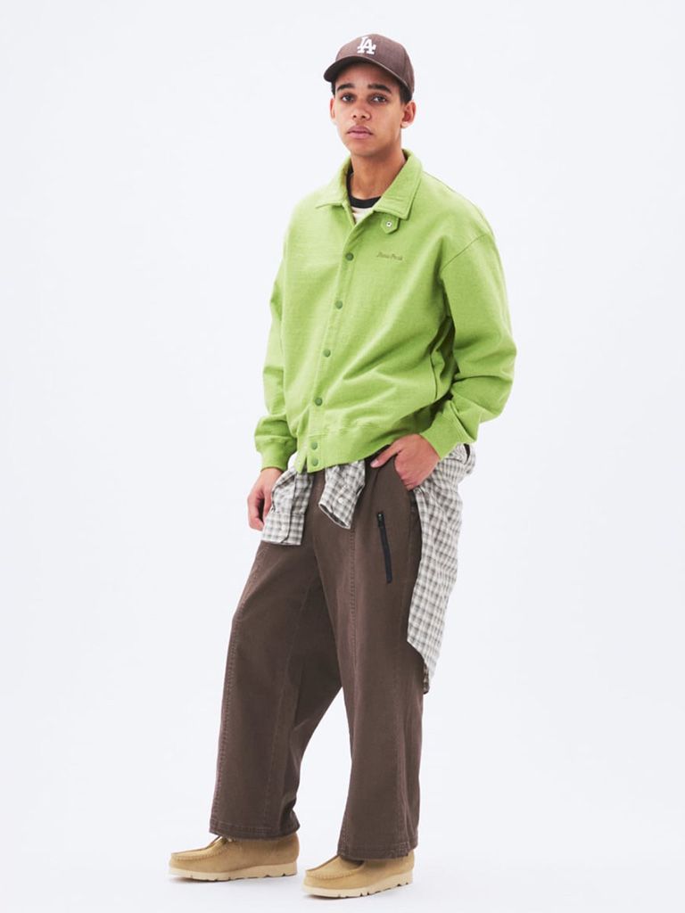小ぶりでムードのある柄をオリジナル配色で仕上げ、無骨さ漂うブラウンと、26SSらしいクリーンなグリーンの2色を展開します。