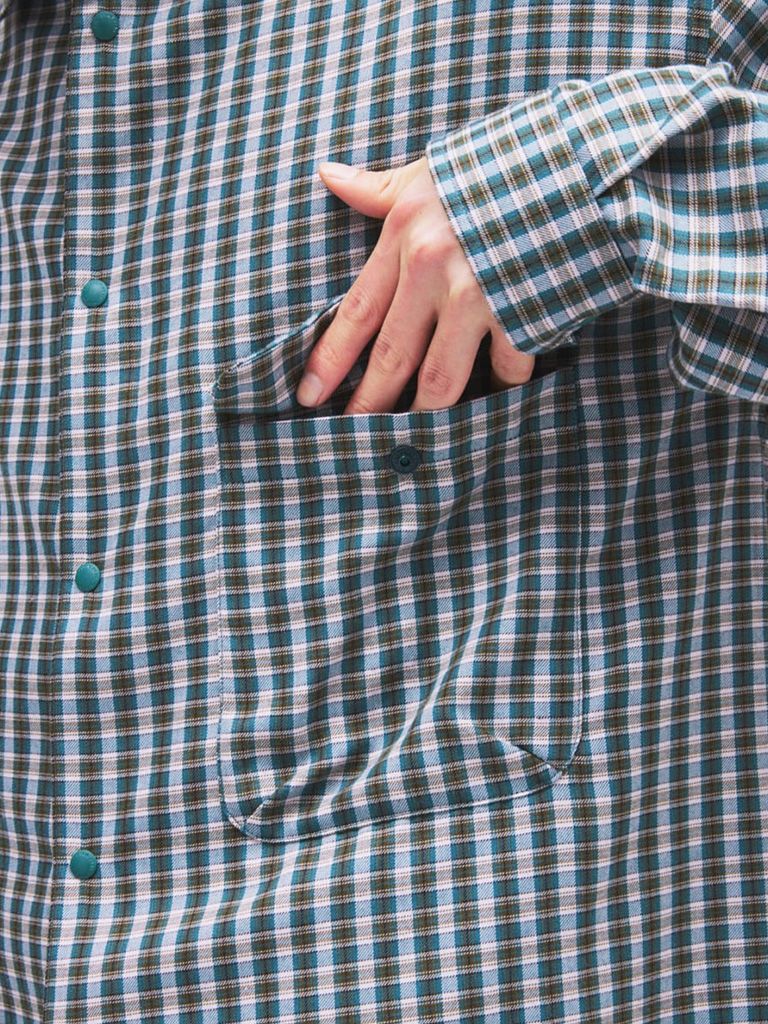 アウトドアブランドならではの“いなたい”魅力を残しつつ、都会的なバランスへと再構築した別注チェックシャツ。