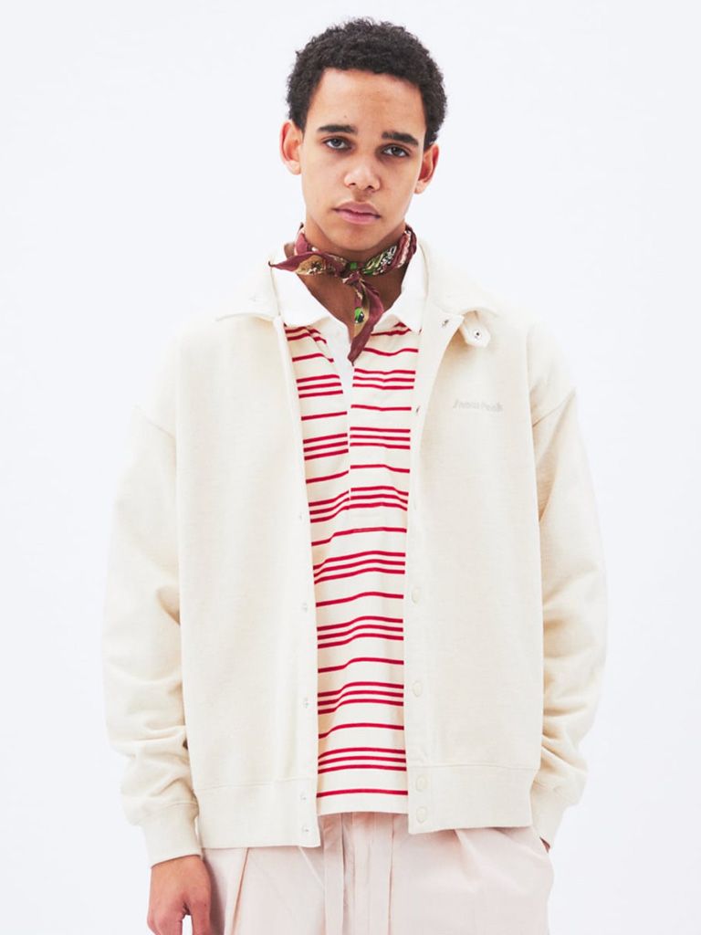 襟は立てても寝かせても決まる2WAYデザインで、カジュアルにもクリーンにも振れる万能さが魅力。