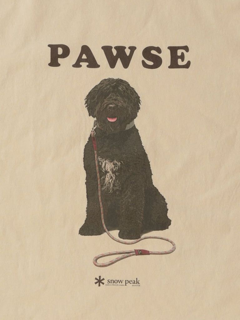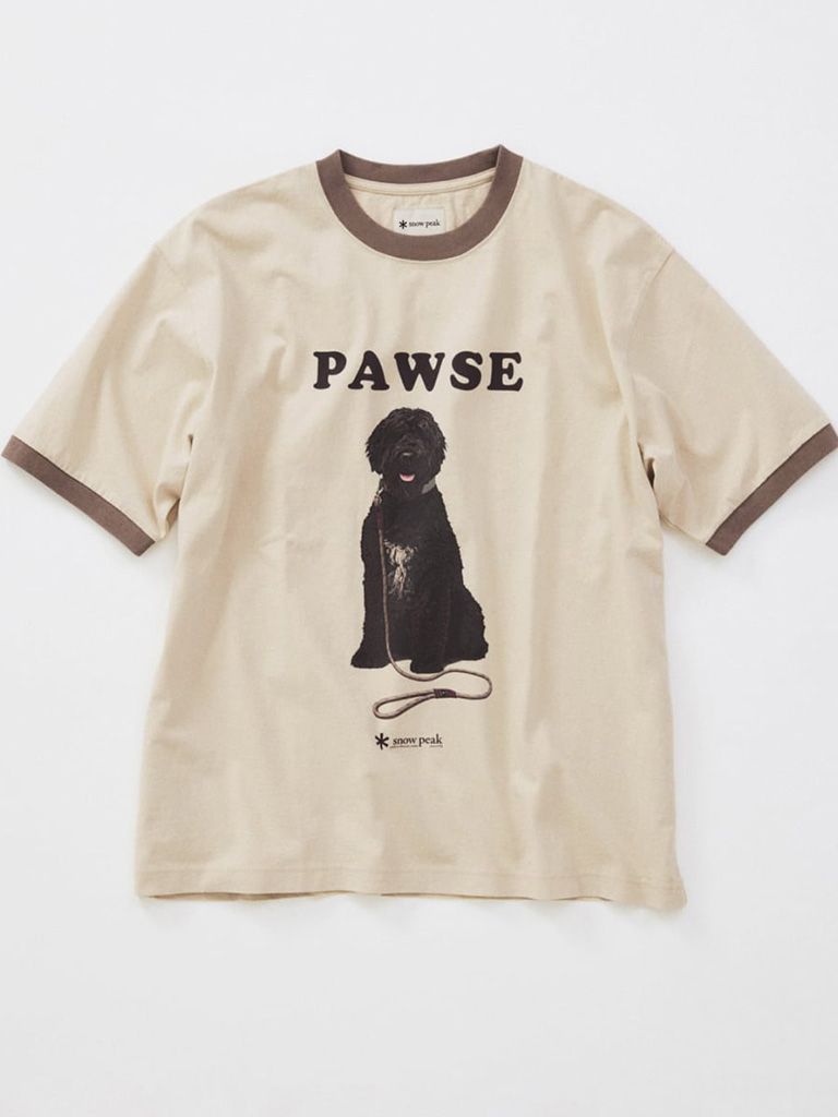 キャンプサイトで過ごす穏やかな時間を、静かに佇む犬のグラフィックで描いたリンガーT。