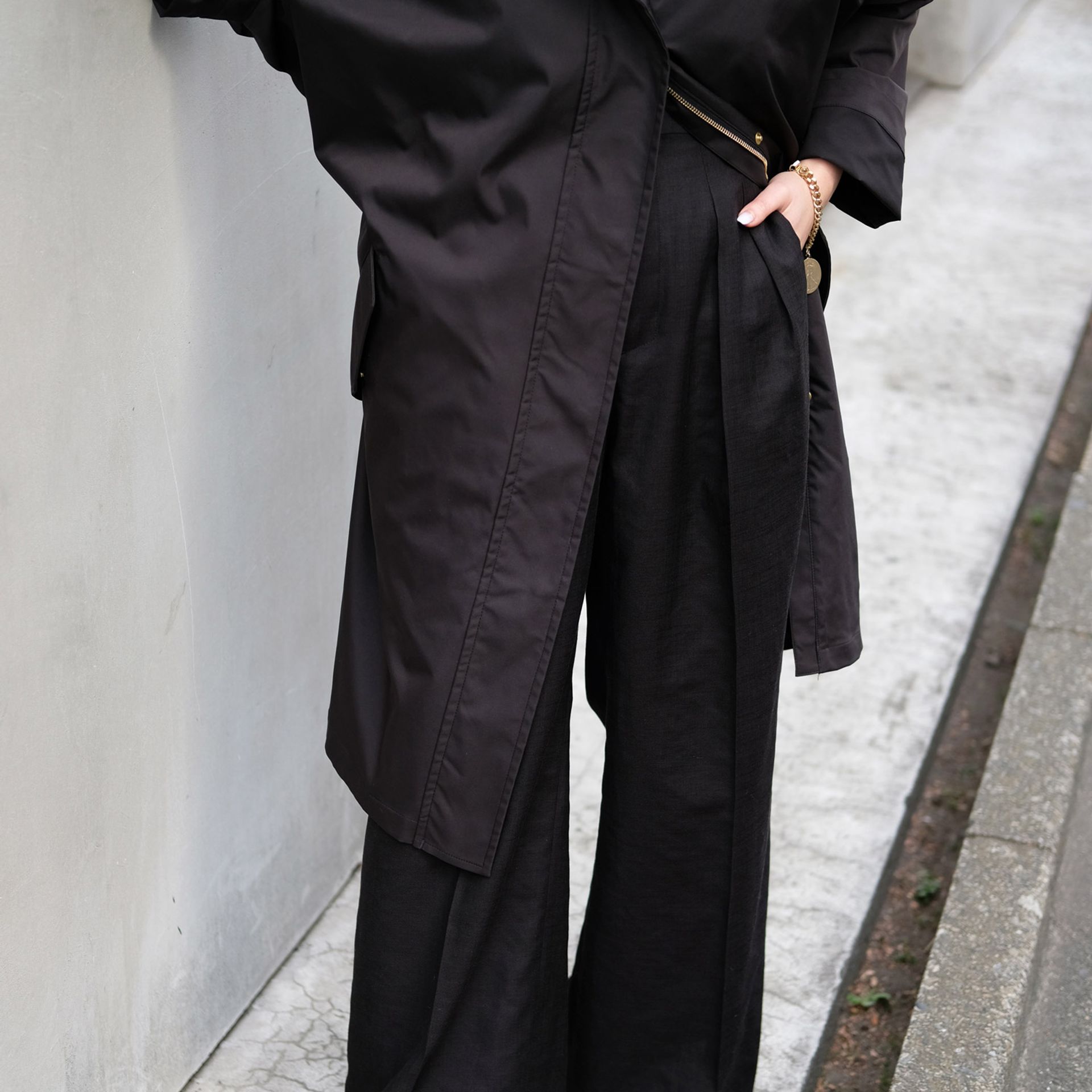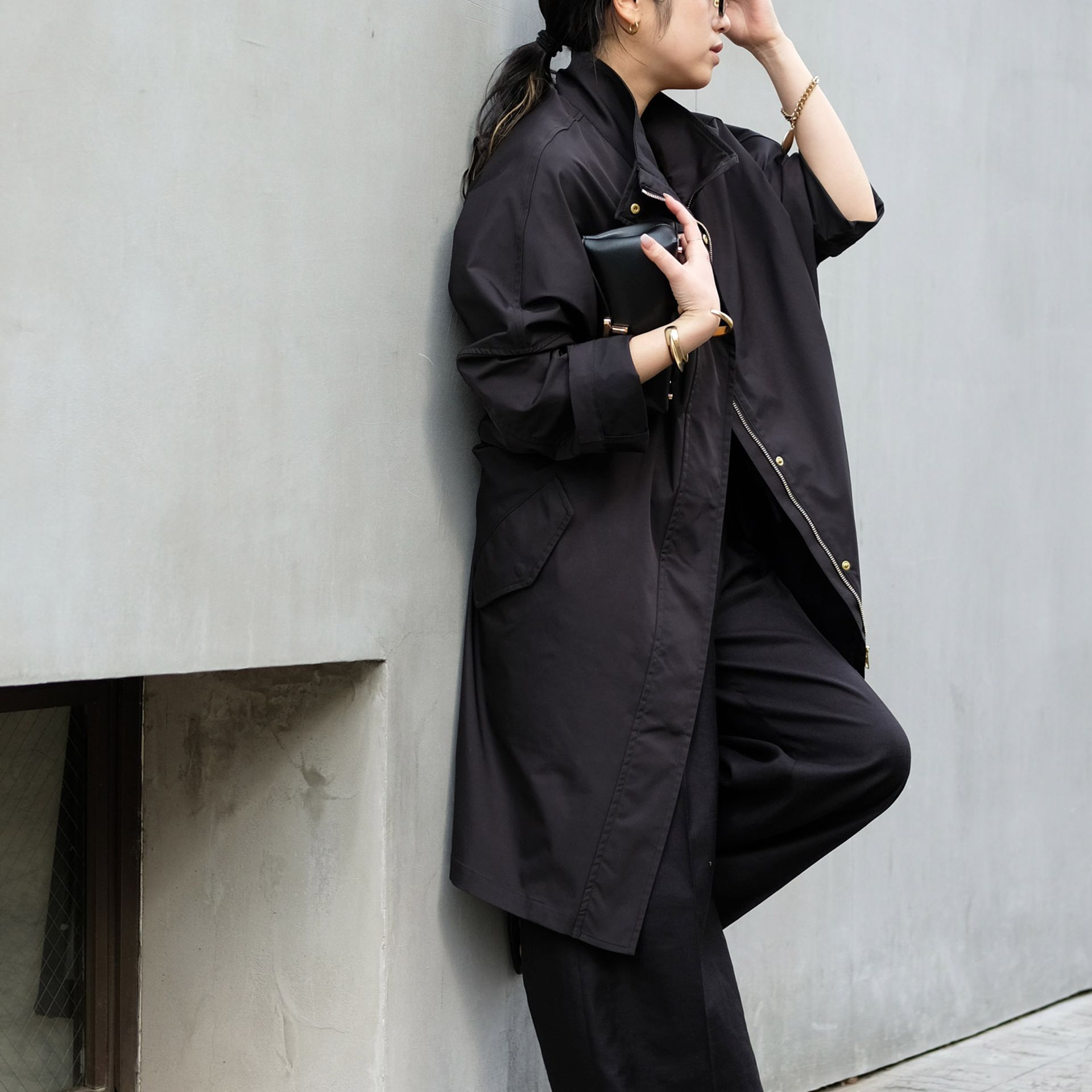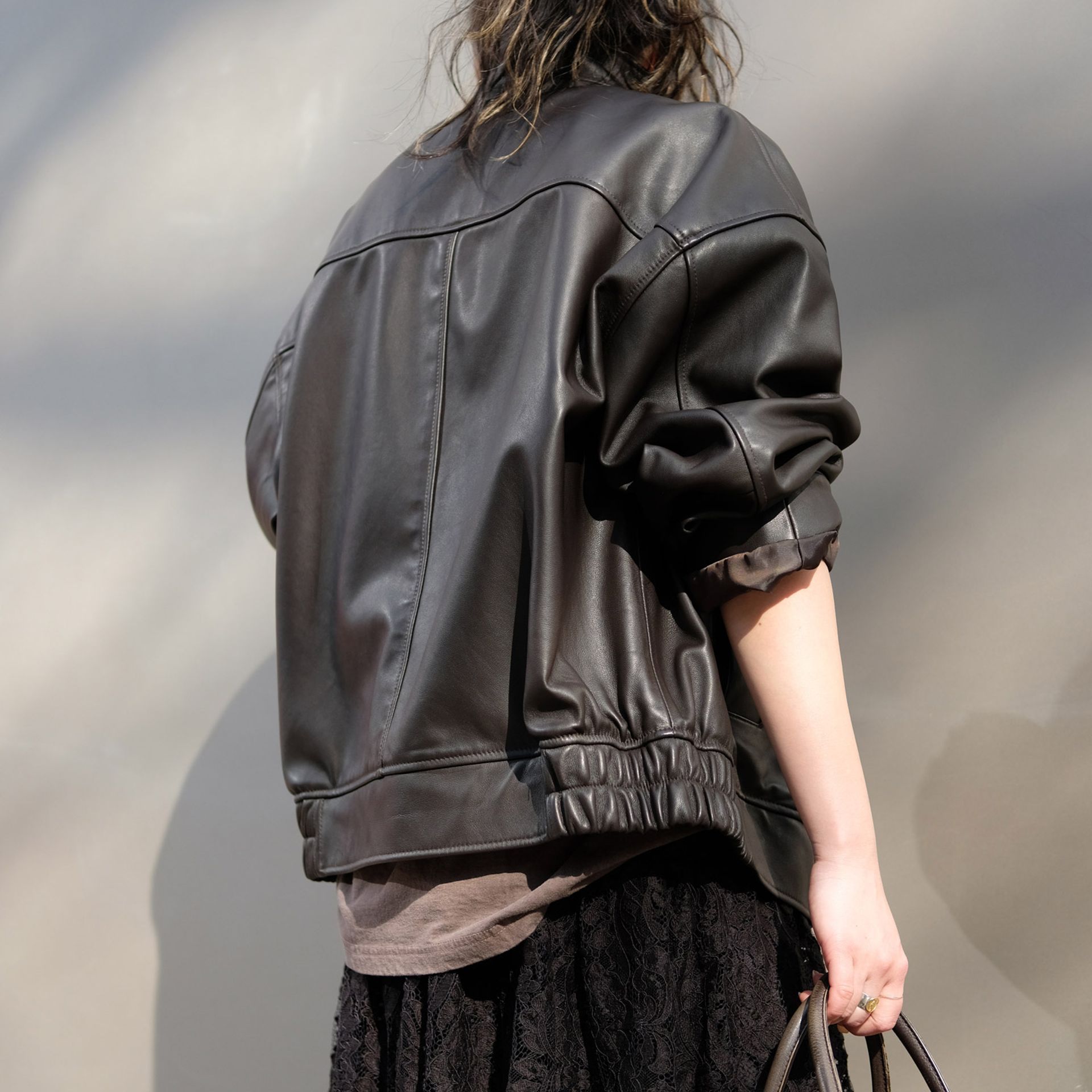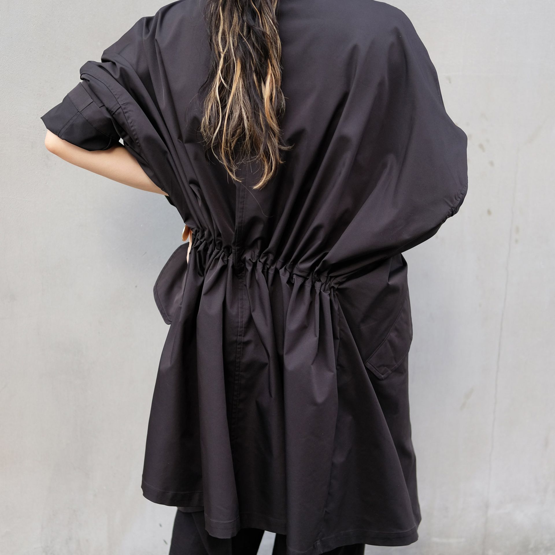 バックウエスト部分が絞れるのも新鮮で、ドルマンスリーブのようなシルエットになってバランスが決まるのも嬉しい。