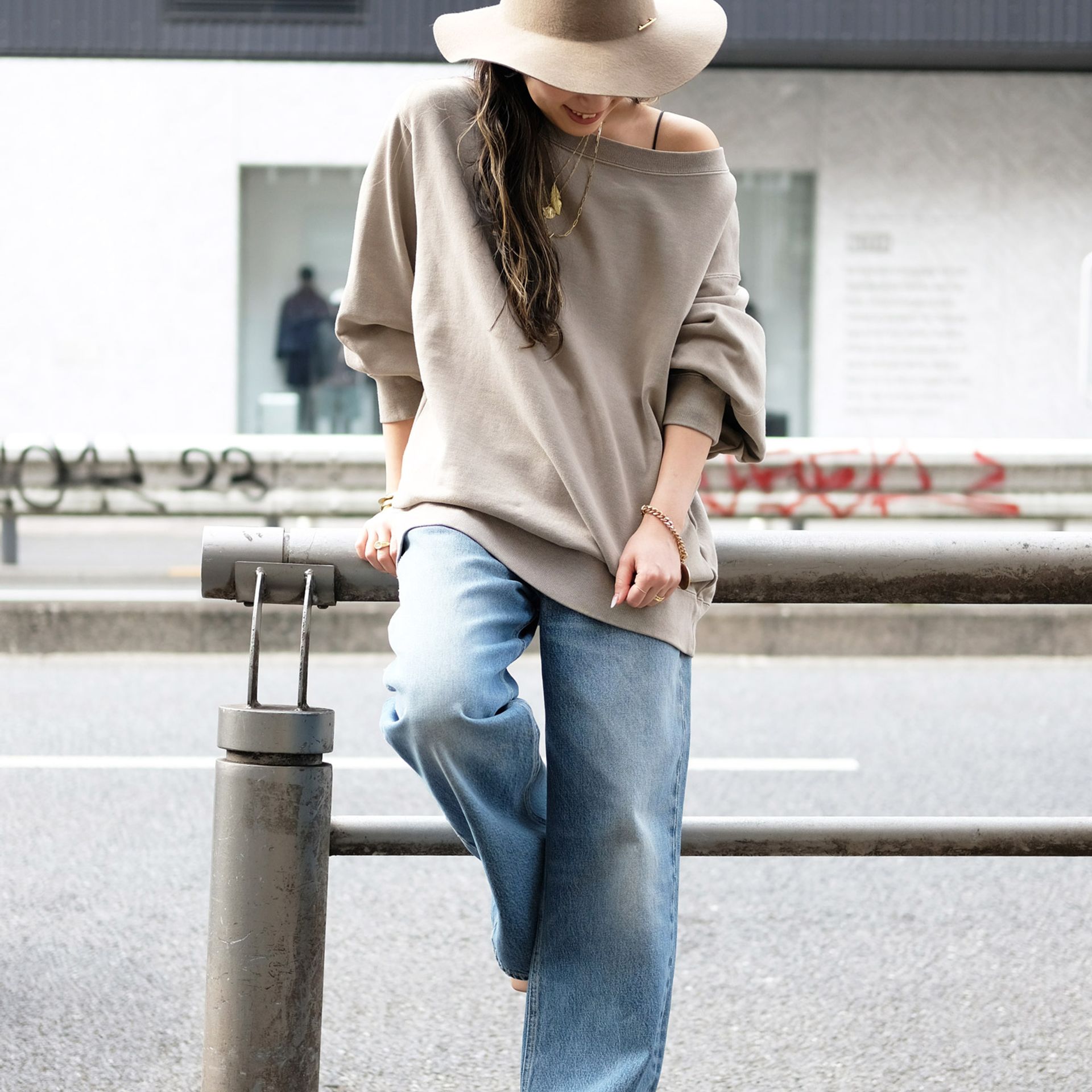 さらにハットをプラスして小物でアクセントを。