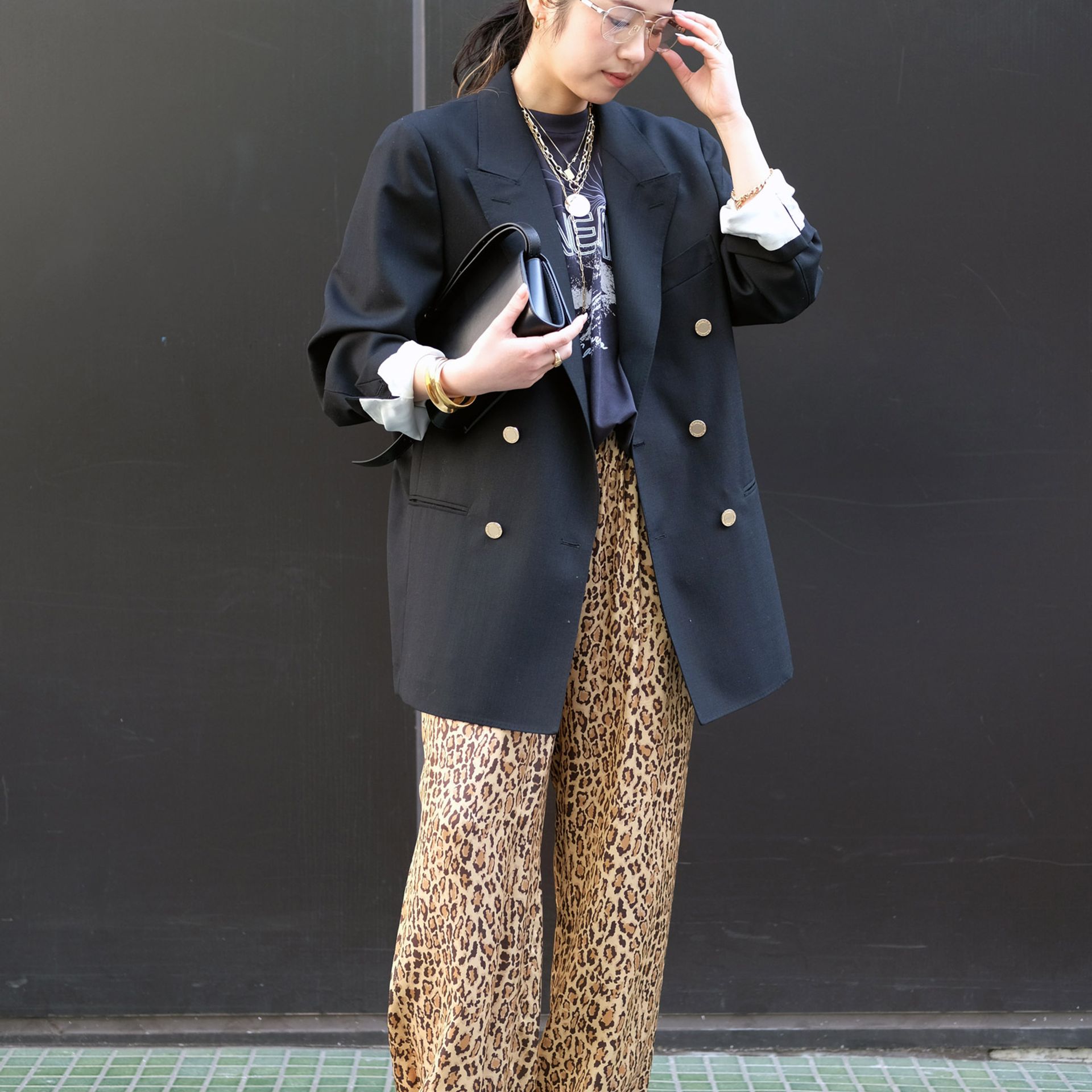 いつもはあまり取り入れないアイテムも、他を定番アイテムでまとめることで自分らしいスタイルに。