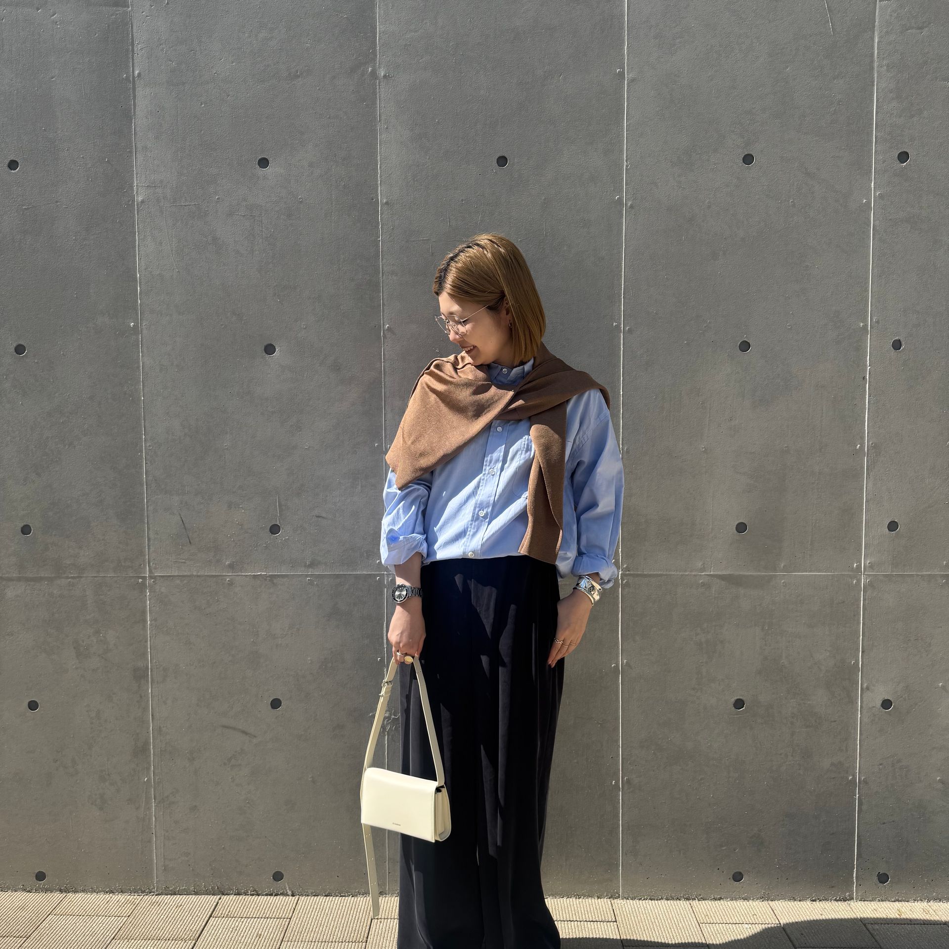カジュアルでもキレイ目でも合わせられる万能なバッグです!新色キャメルも発売し、カラーを悩み中…。