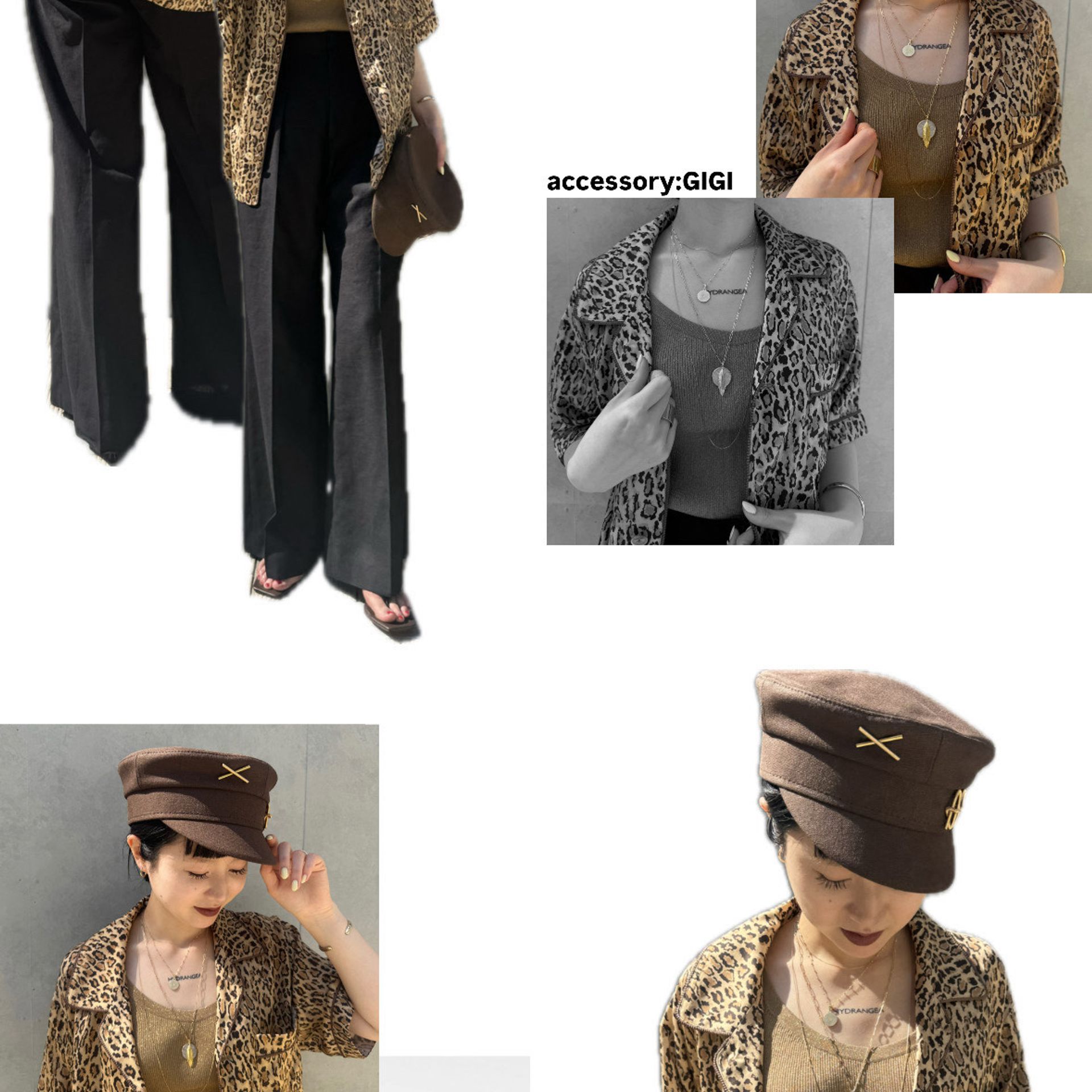 シンプルになりがちな春夏アイテムに、GIGIのアクセサリーを付けて、少しだけ背伸びしたファッションに。