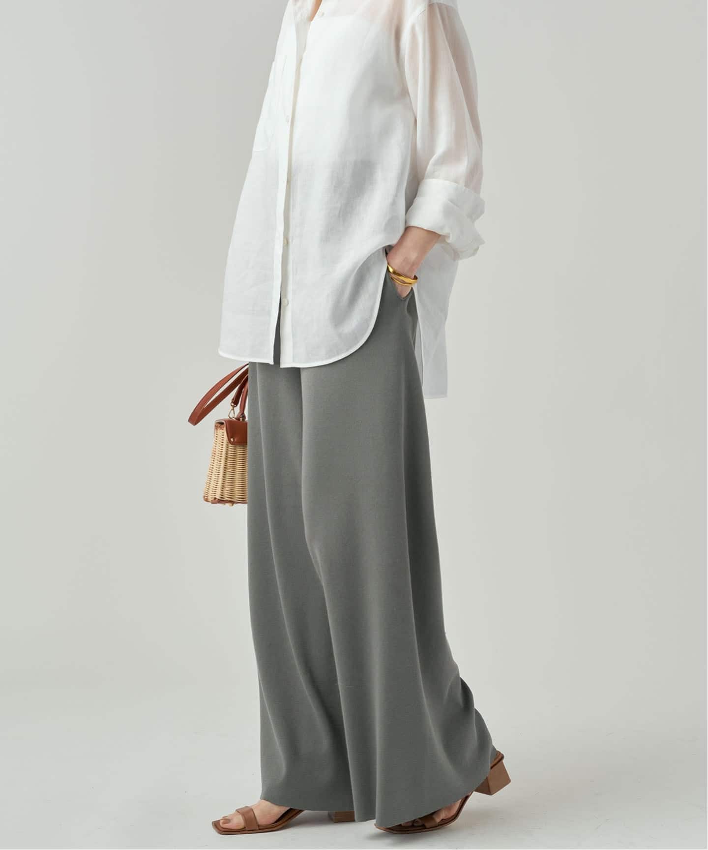 落ち感のある生地は動くたびニュアンスを生み、セットで着れば一瞬で雰囲気のあるスタイルへ。