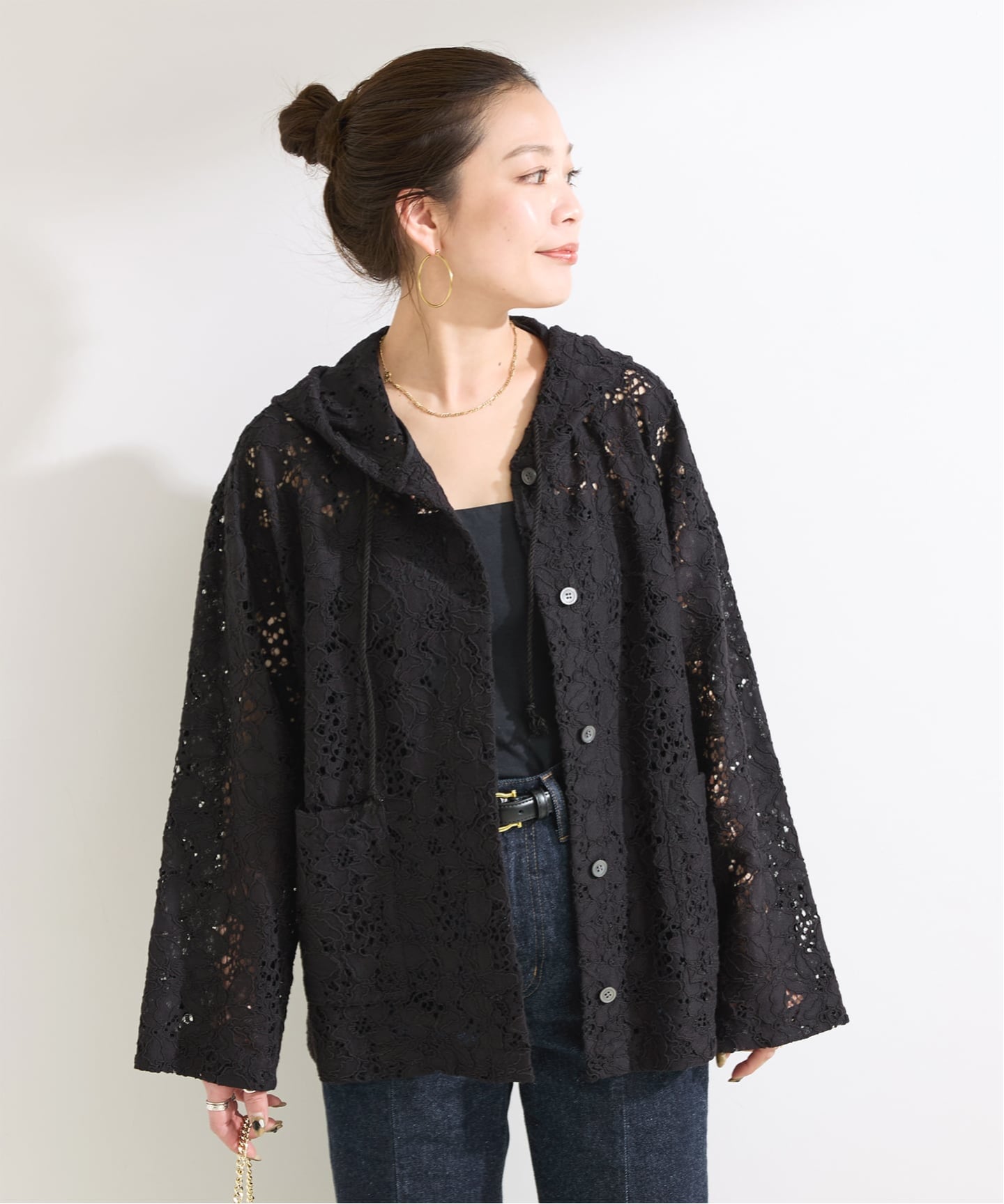 軽やかなレース素材が、いつものコーディネートにさりげない変化を与えてくれます。