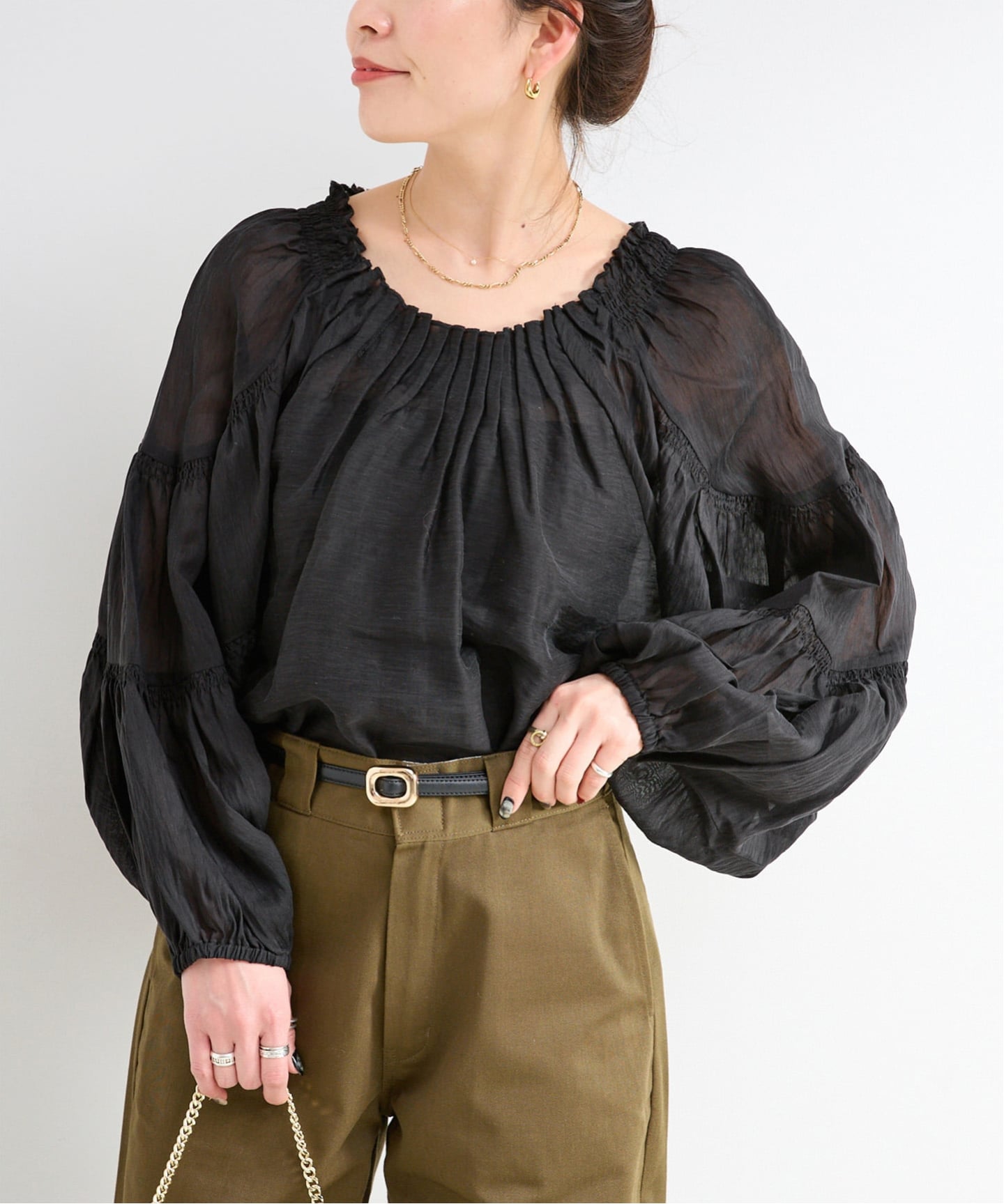 そんな“主役級ブラウス”があれば、シンプルなボトムもぐっと新鮮に映ります。