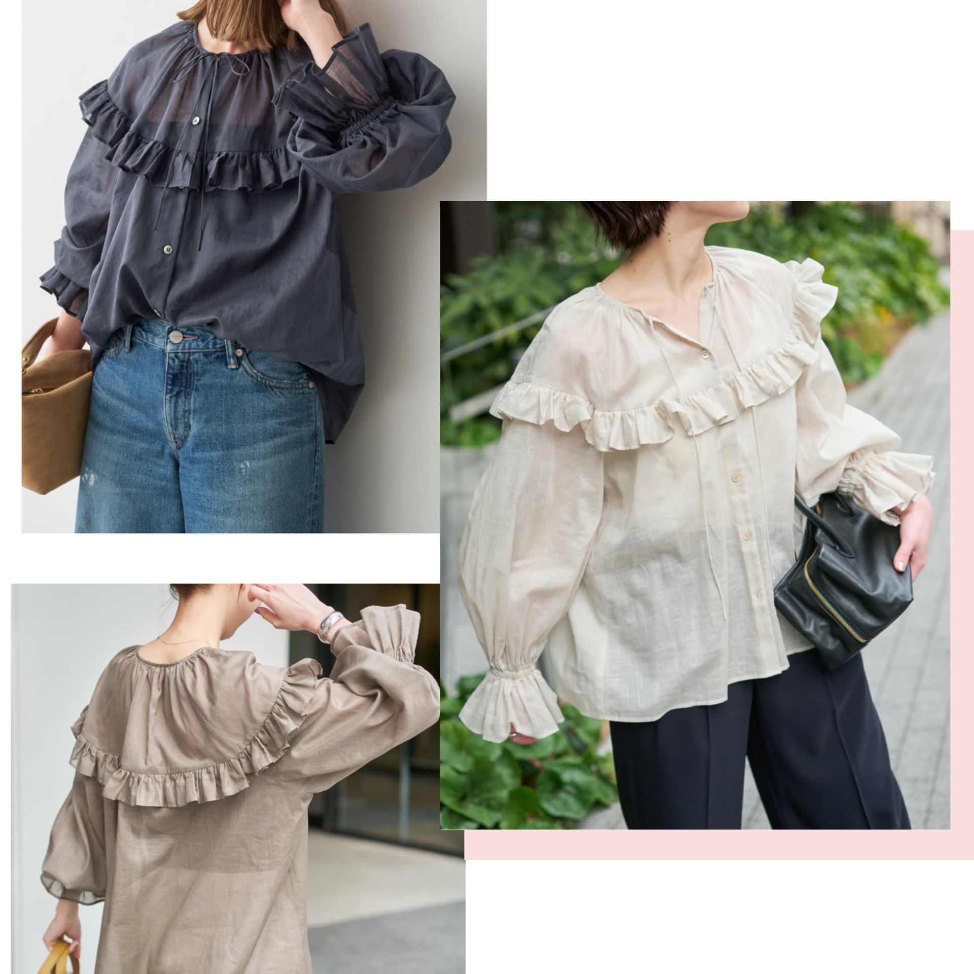 軽やかなラミー素材にフリルディテールが映えるブラウス。