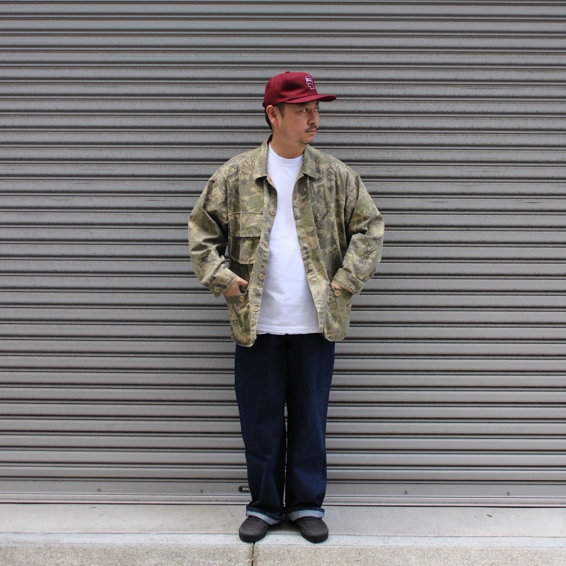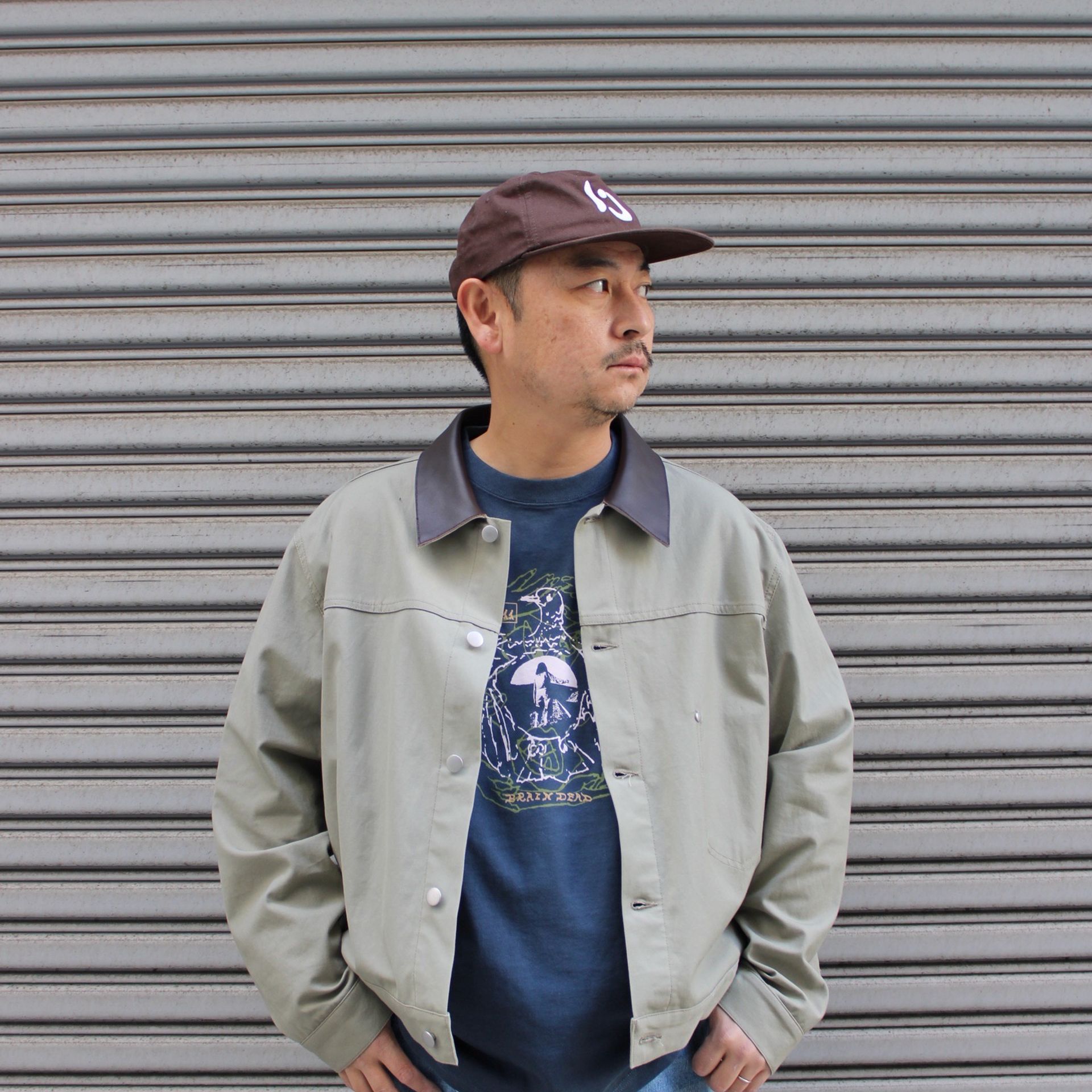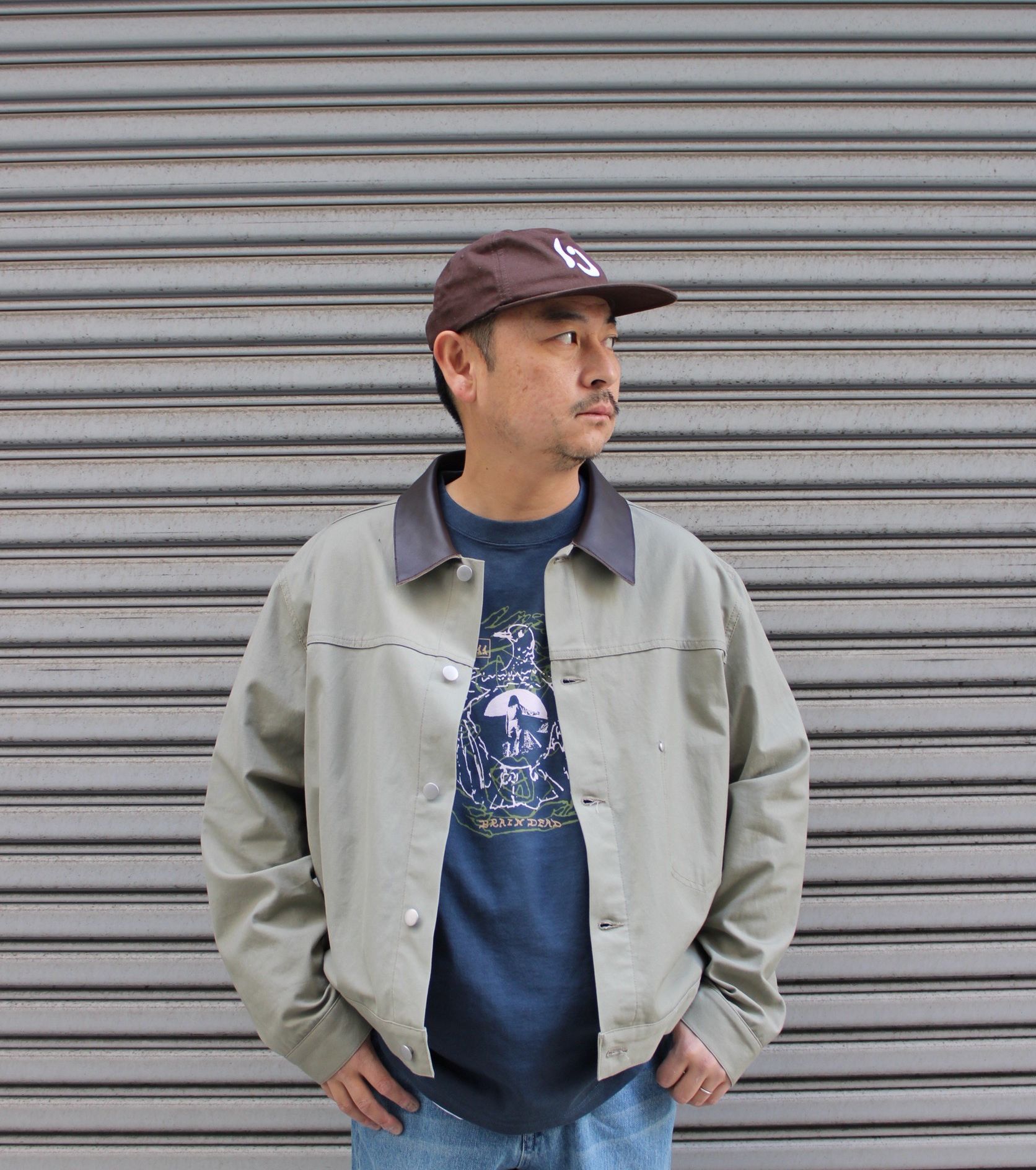 ジャケットは前シーズン購入し愛用しているBrain dead。カーゴジャケットにインスピレーションを得たツイル素材のミリタリーシャツ。個人的に歴代購入の中でも相当な名作です!