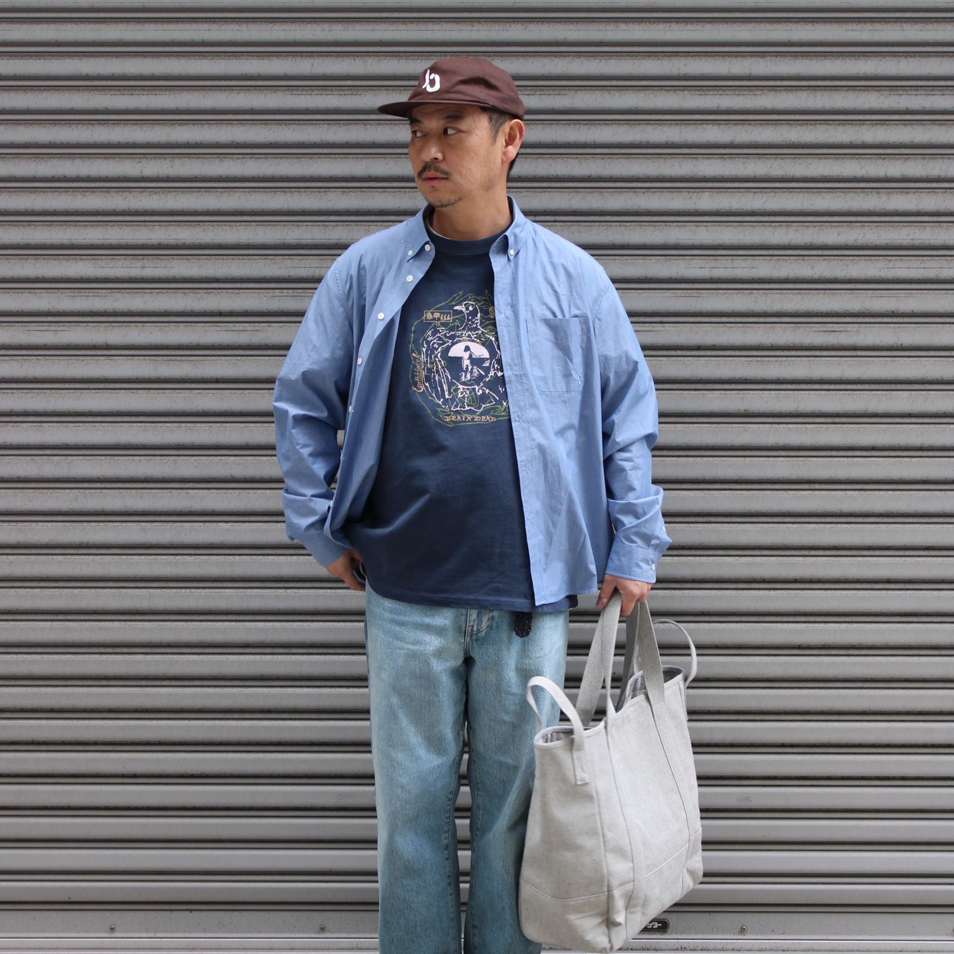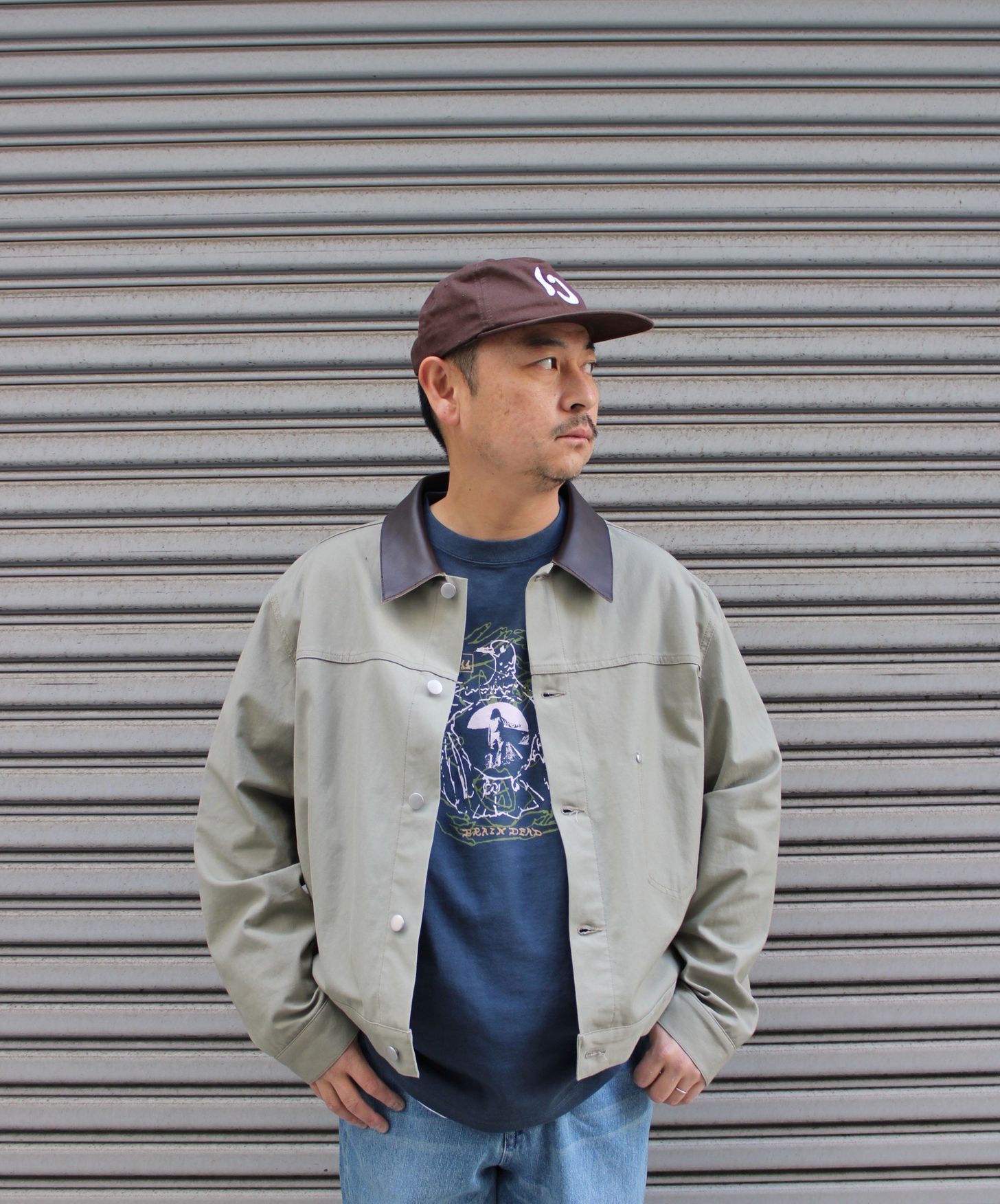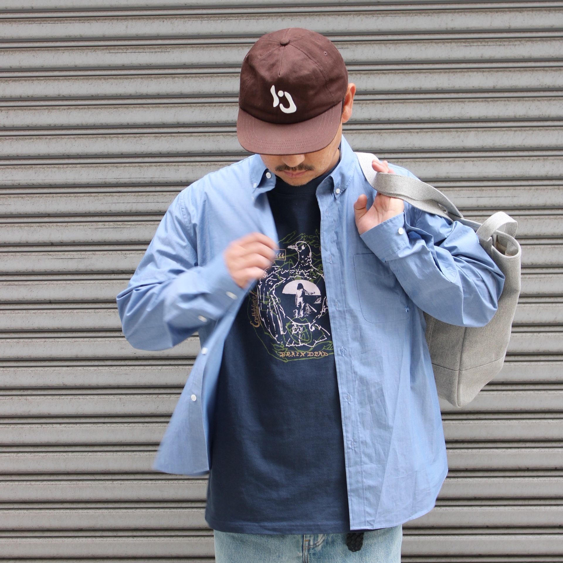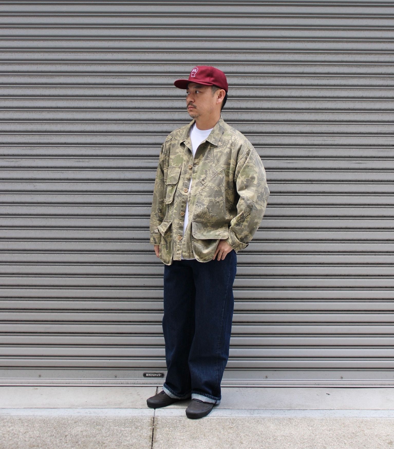ジャケットは前シーズン購入し愛用しているBrain dead。カーゴジャケットにインスピレーションを得たツイル素材のミリタリーシャツ。個人的に歴代購入の中でも相当な名作です!
