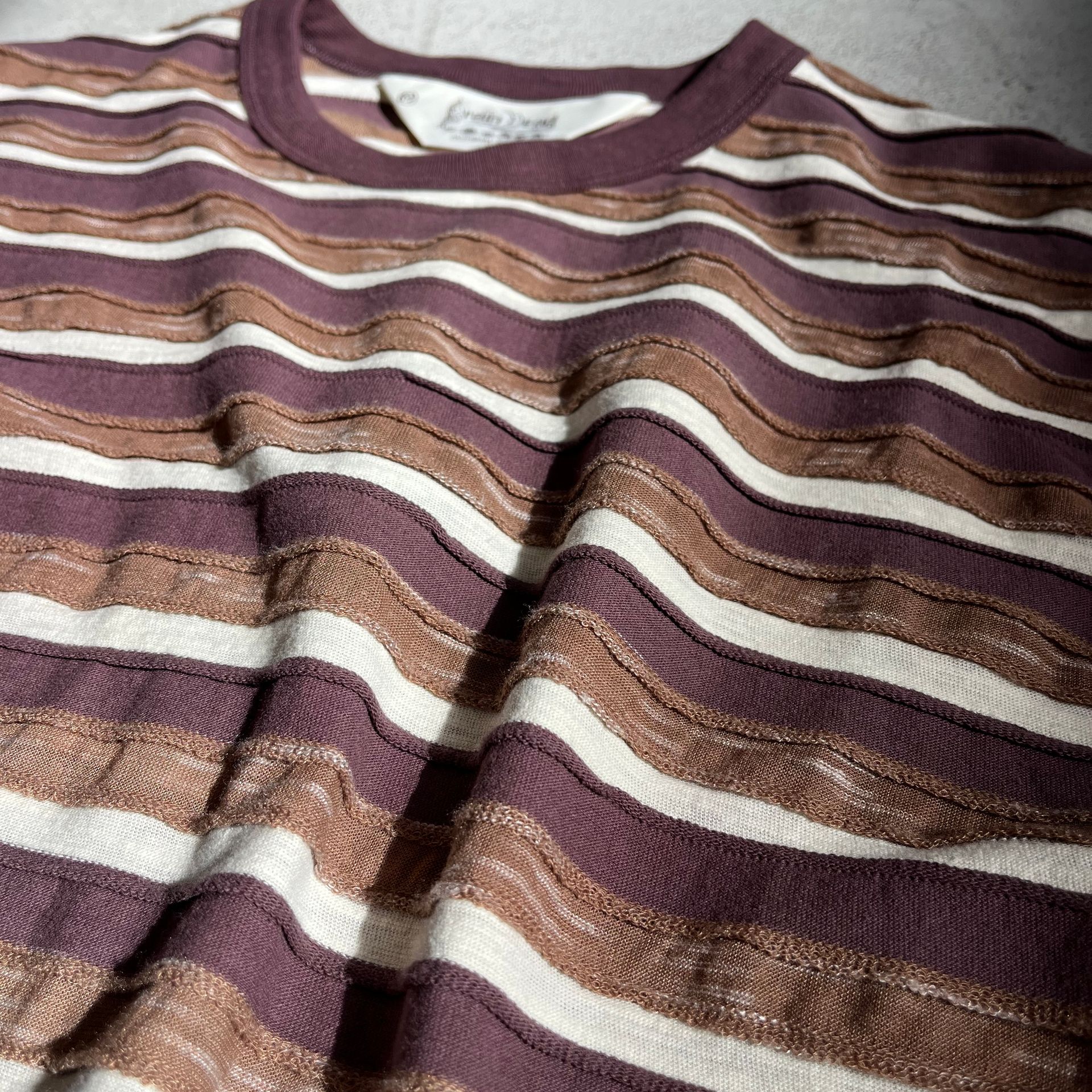 異なるコットンジャージー生地を縫い合わせたアーティスティックなボーダーT。