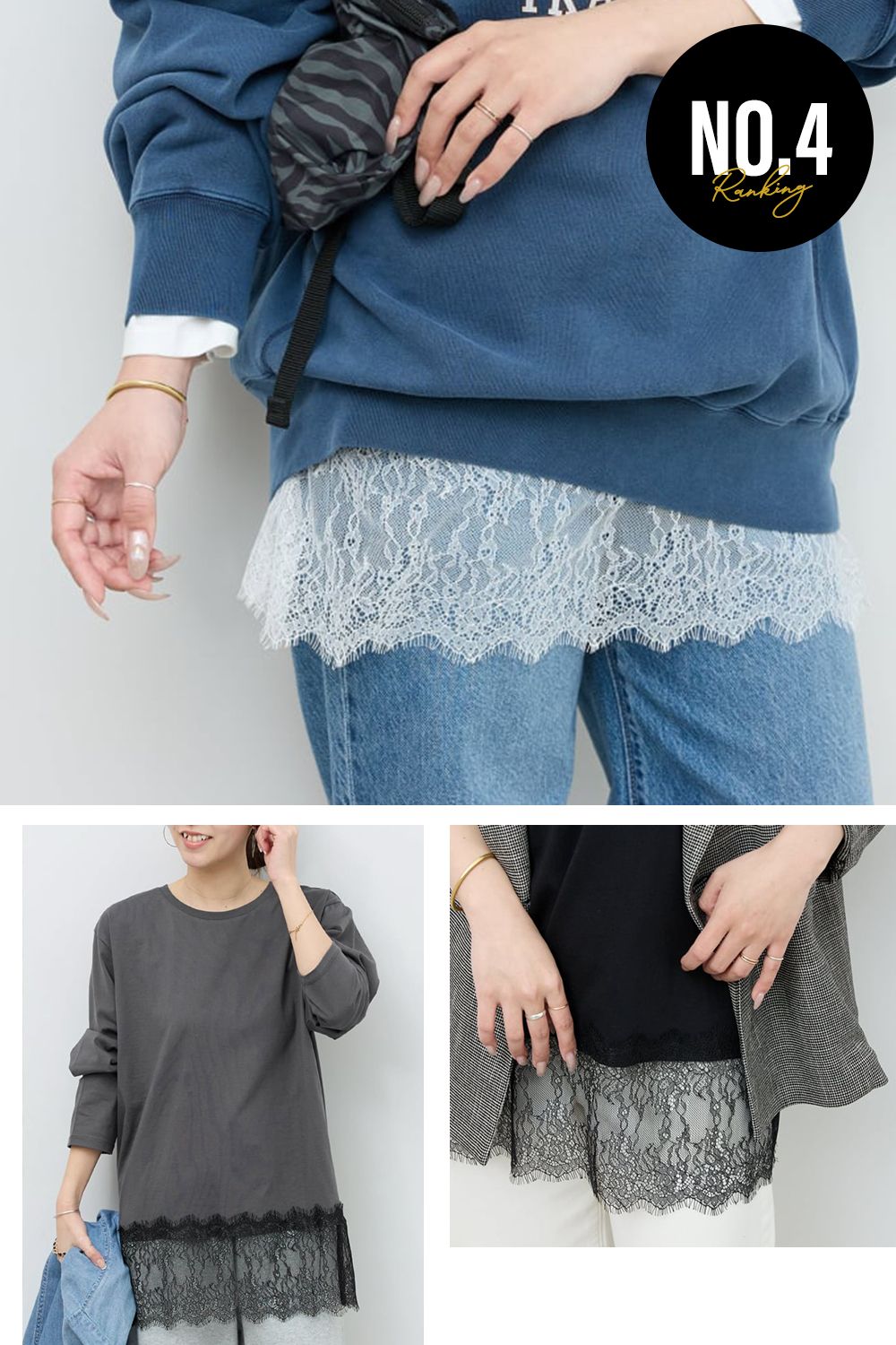 ▶今季本命のレースアイテム!着回し力も高く、カジュアルからきれいめまで幅広く着まわせる逸品!カジュアルな着こなしにレースを仕込んで女性らしさを出す方が急増中です!実はヒップをさりげなくカバーできるのも人気のポイントです!