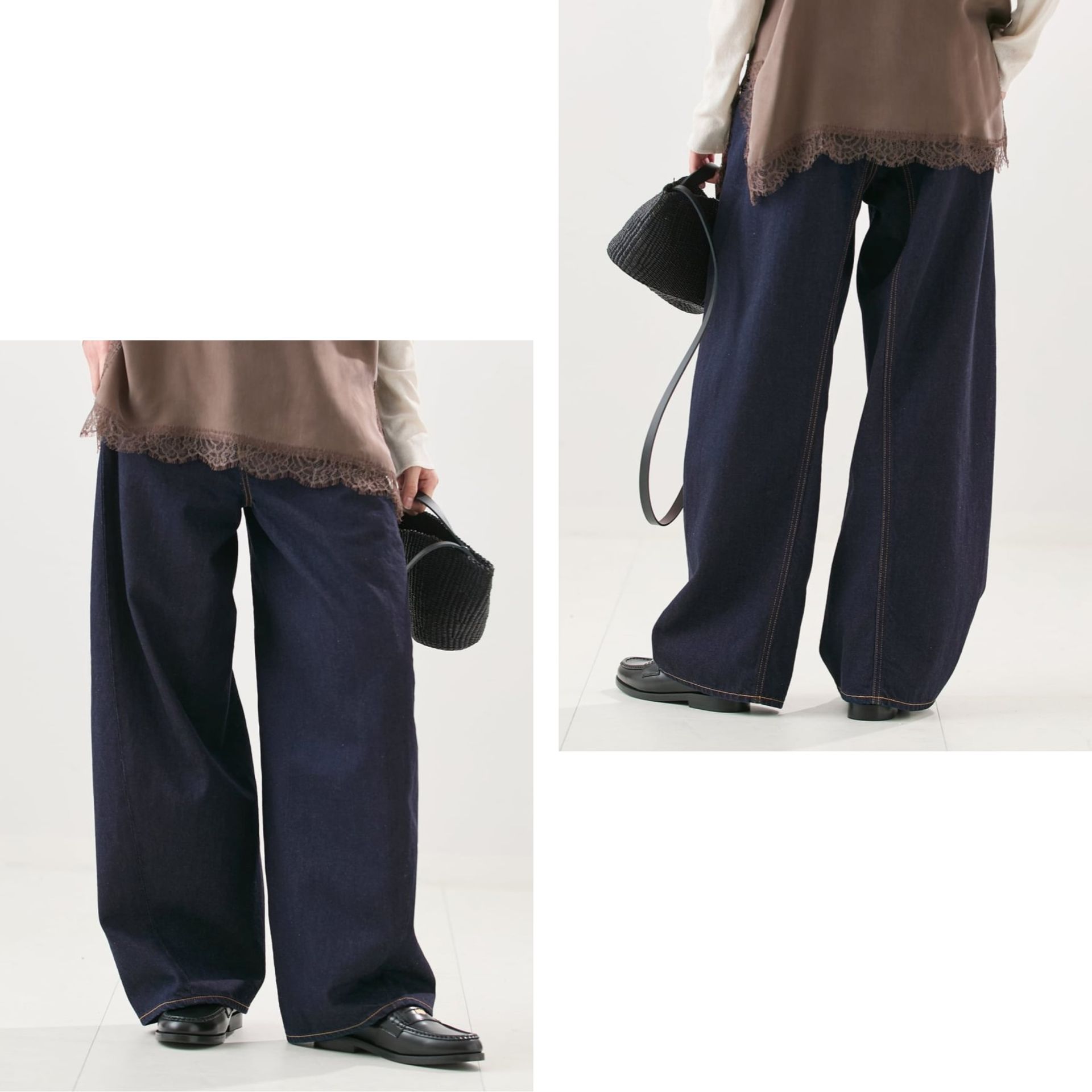 こなれ感を演出するヴィンテージライクなワイドデニム。