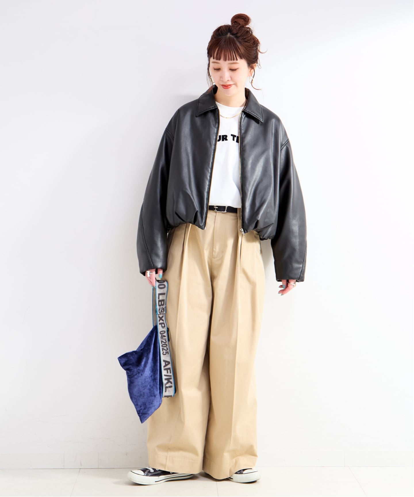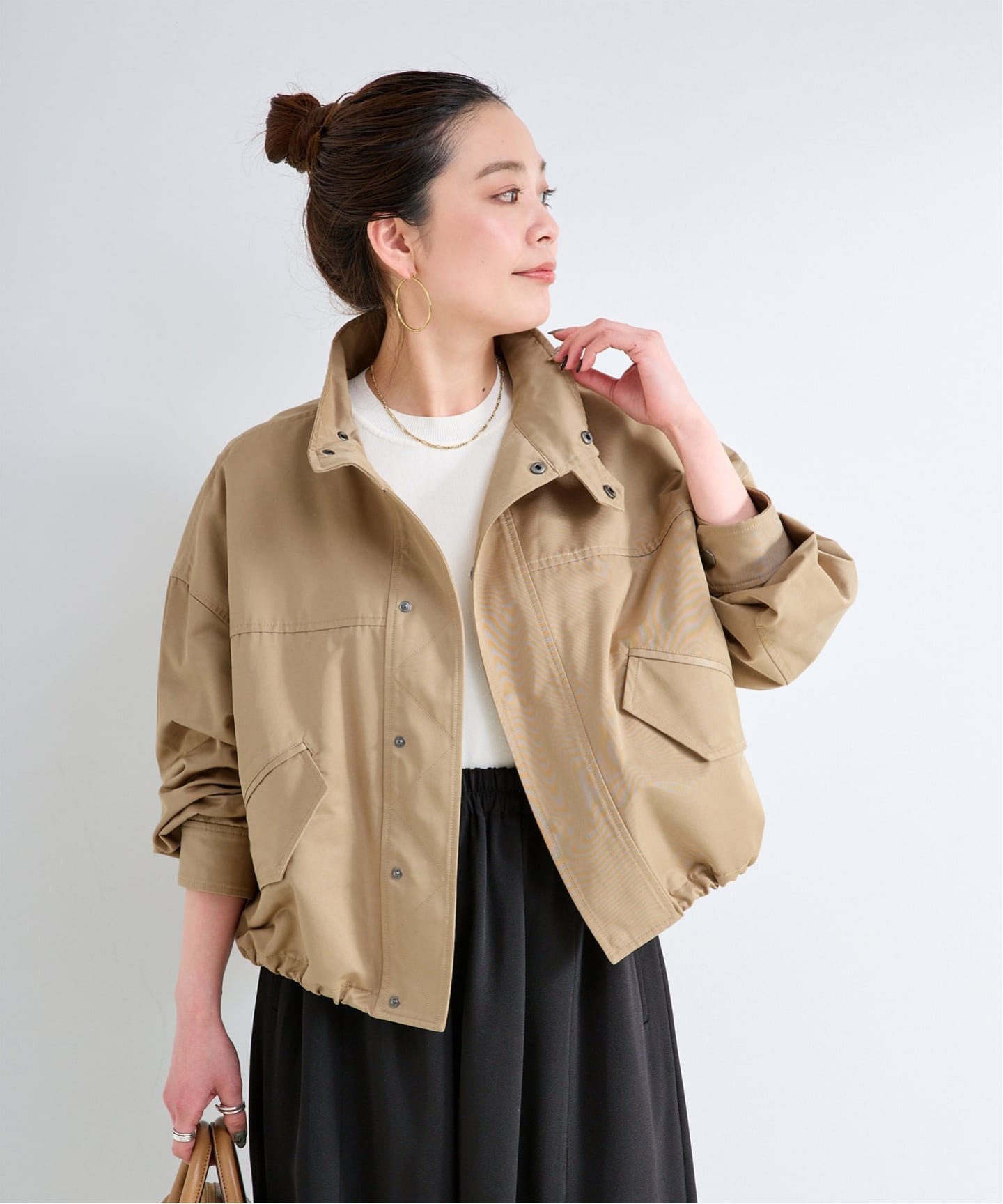 ショート丈なのでワイドパンツやロングスカートとも好相性◎
