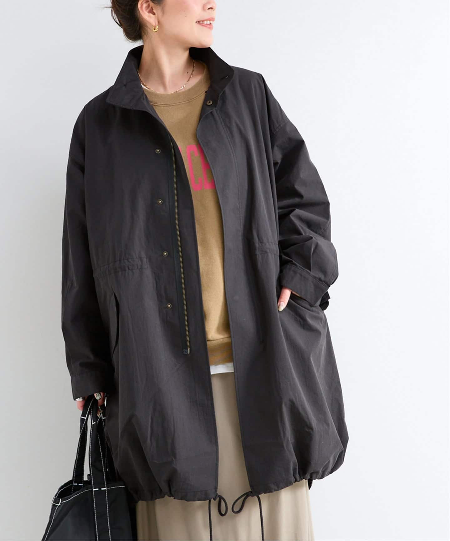 程よいサイズ感とシルエットで、パンツにもワンピースにも好バランスに決まります。