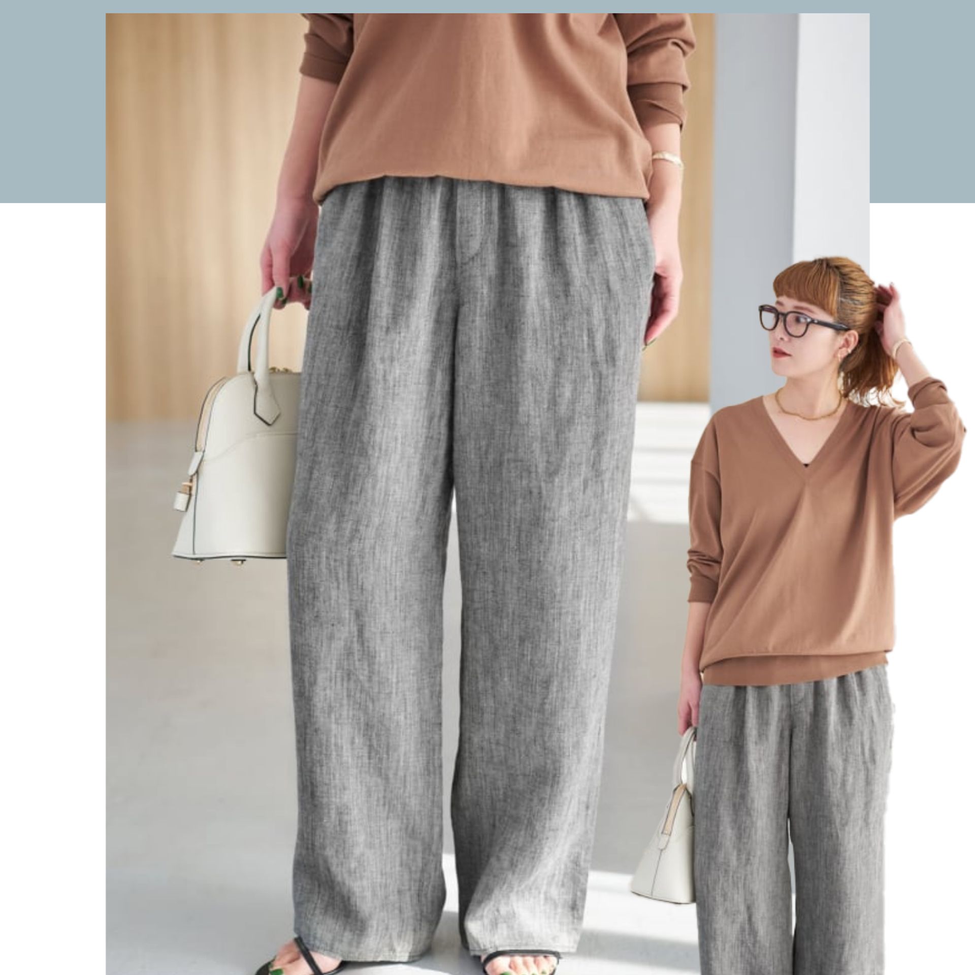 毎年人気のエアリーリネンジャケットと同素材で、今シーズンからパンツが新登場。