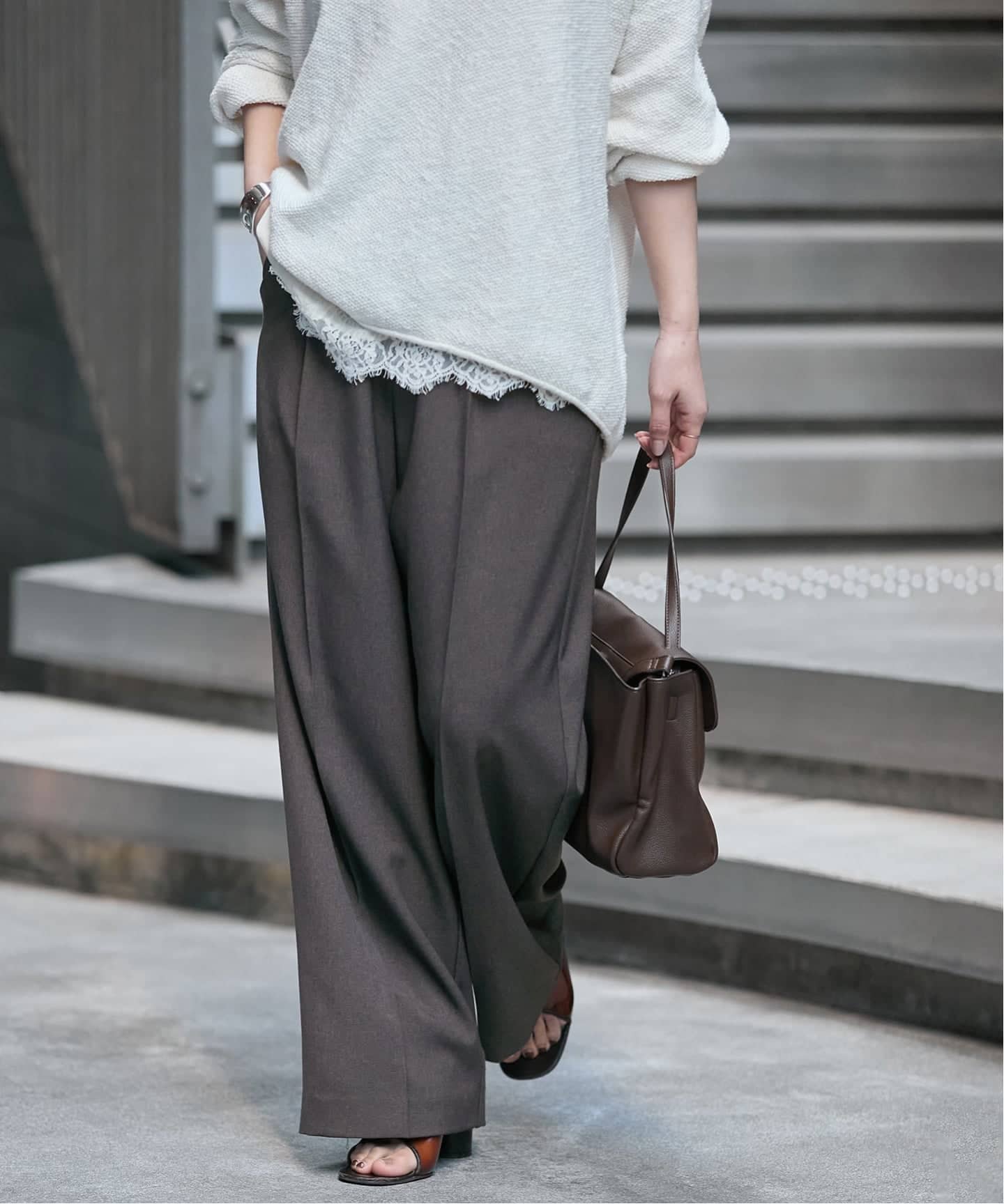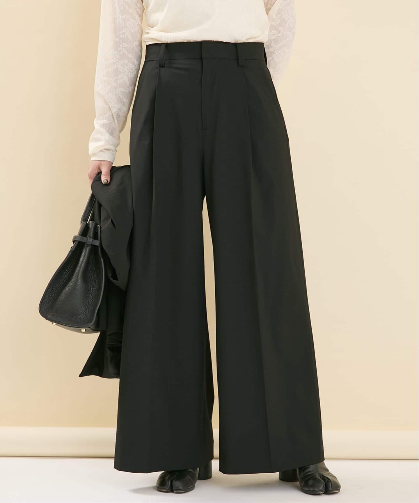 上記でご紹介したスラックスと同素材のワイドパンツ。