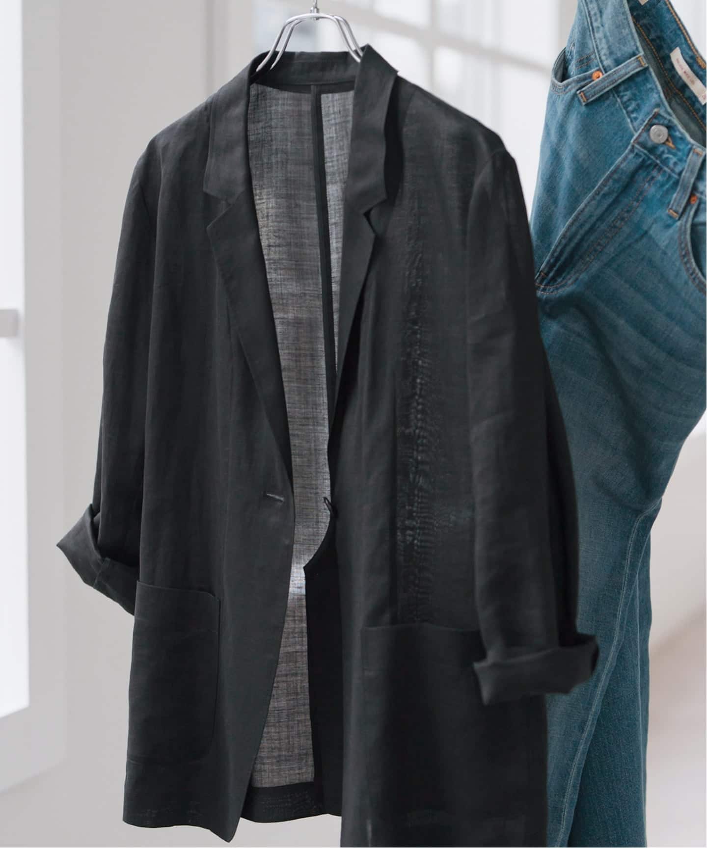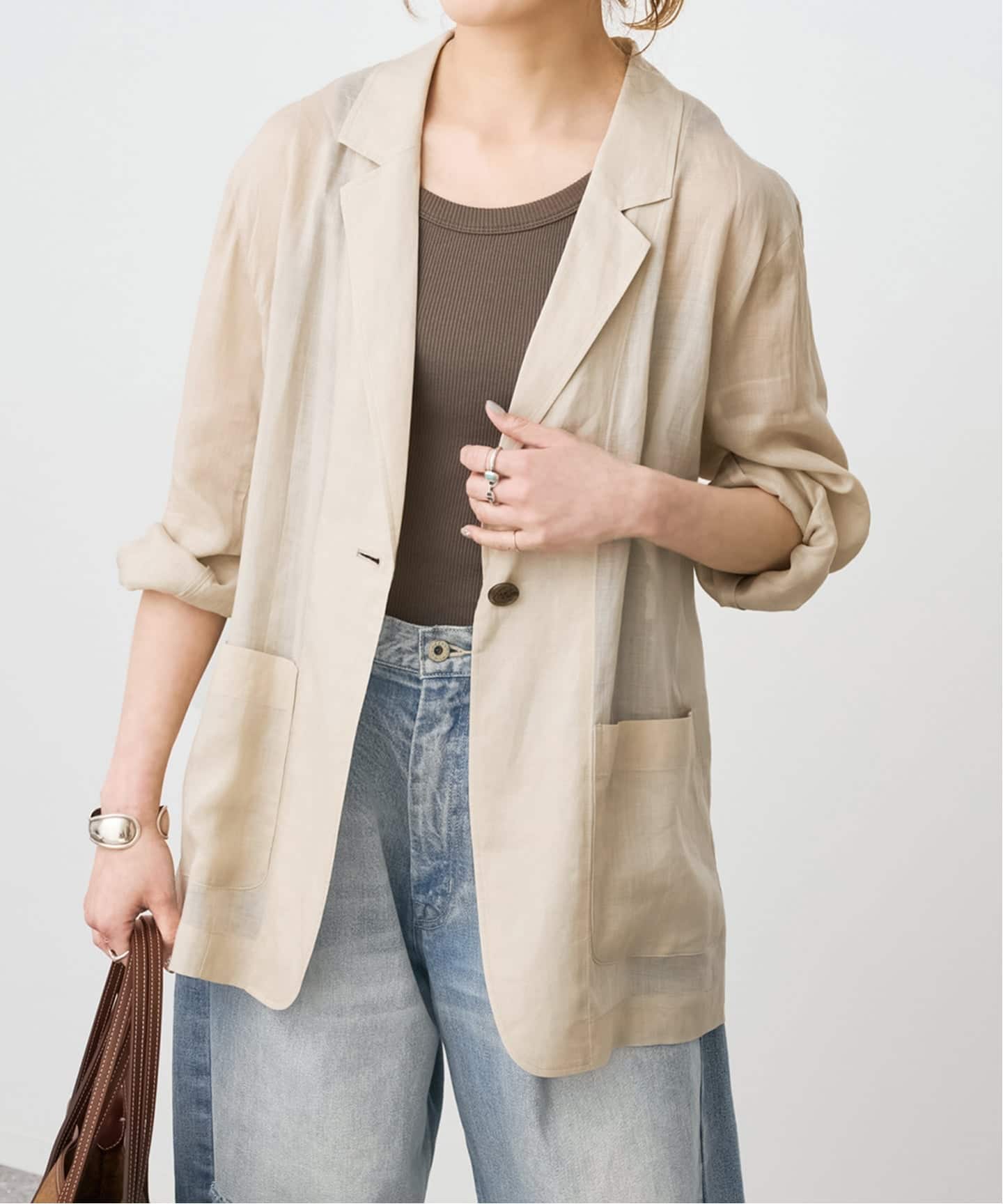 ほんのり透け感のある軽やかなジャケット。