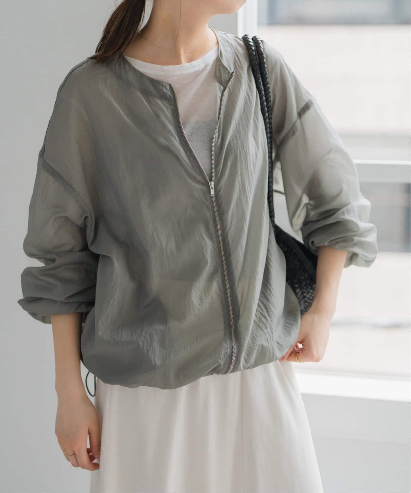 軽やかなシアー素材で春らしいブルゾン。
