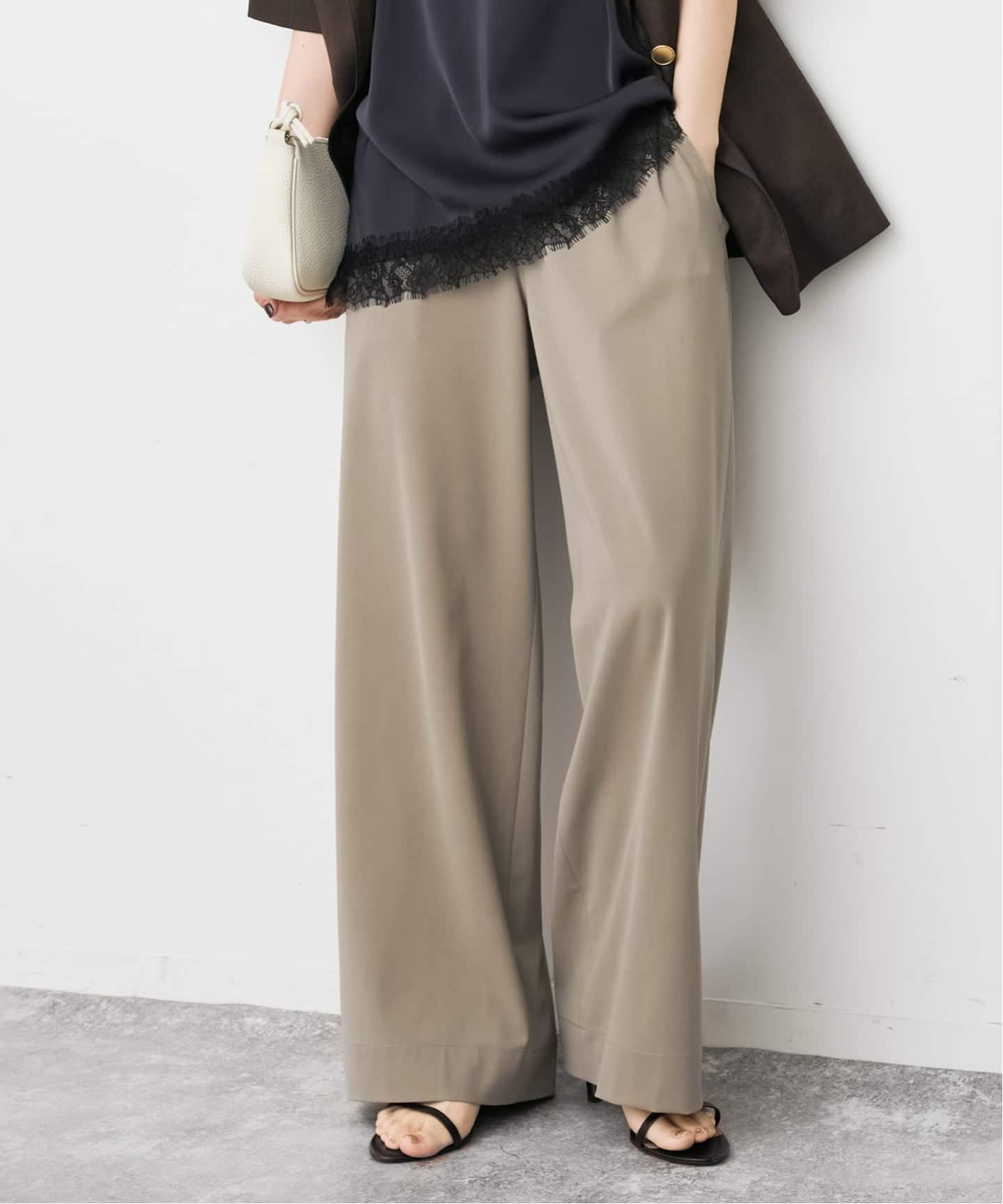 肌離れの良いストレッチが効いた落ち感のあるさらりと軽やかな生地を使用。