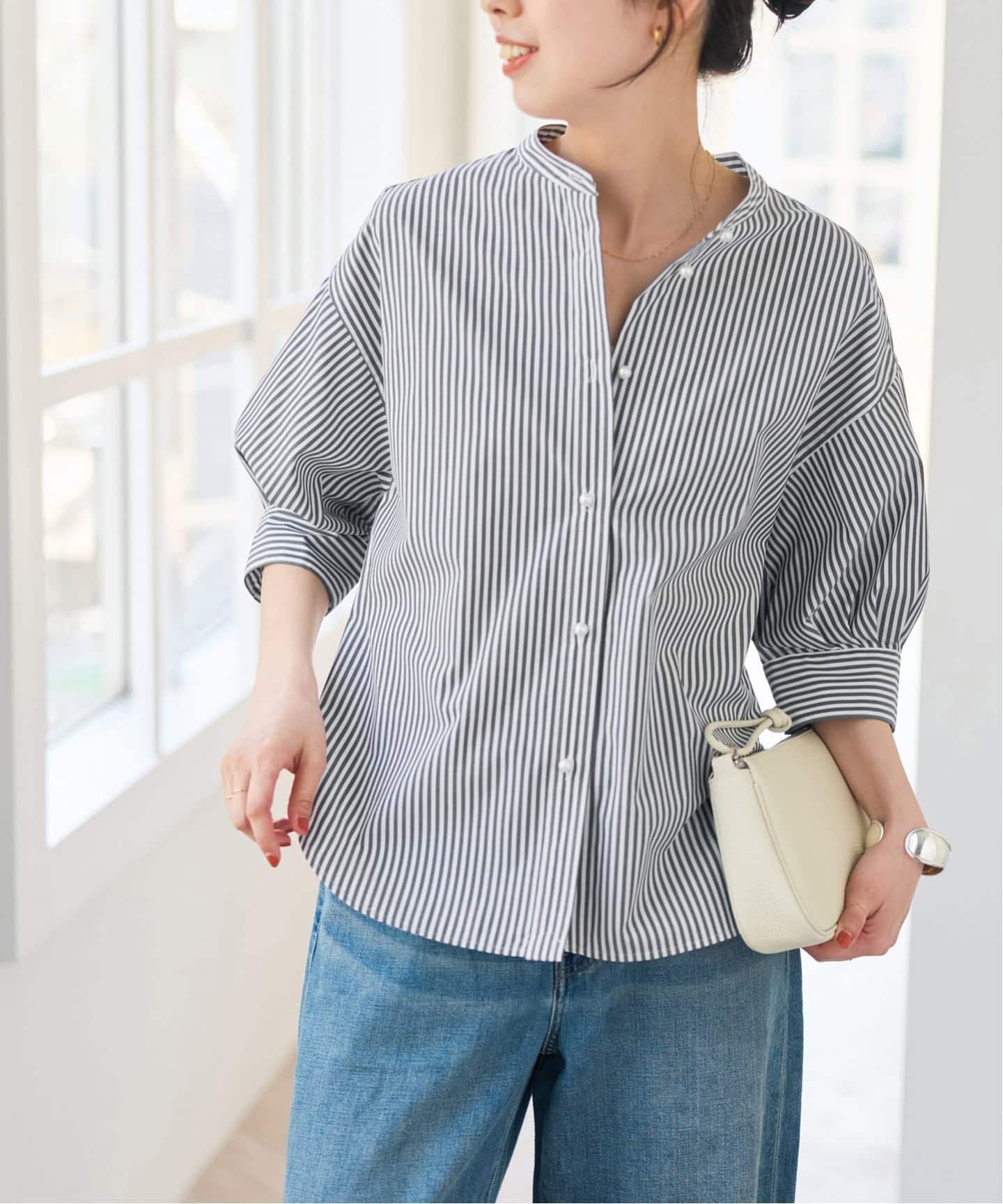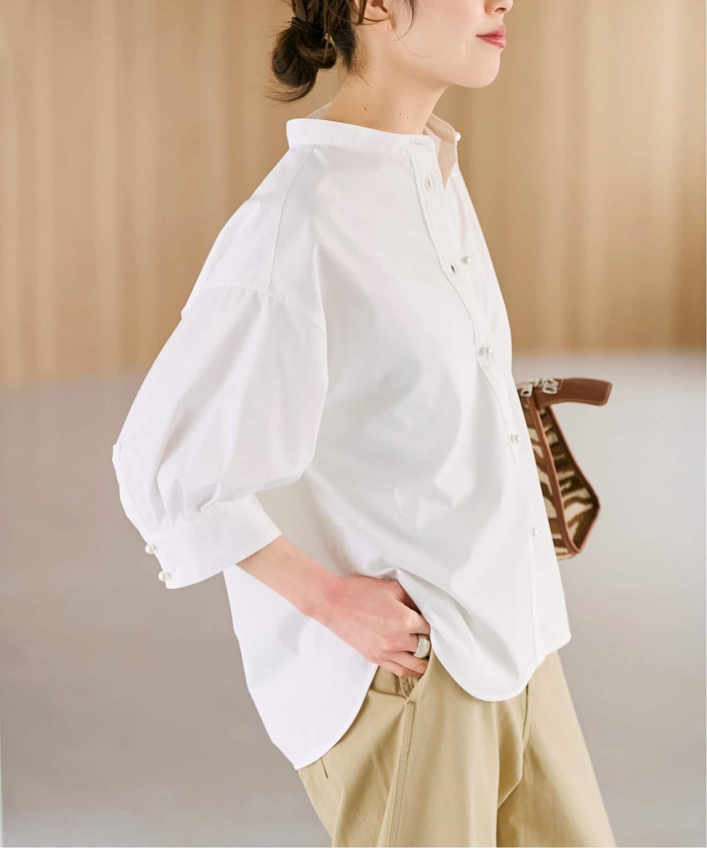 ■ パールボタンギャザースリーブシャツ