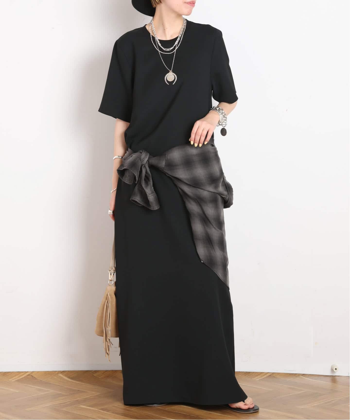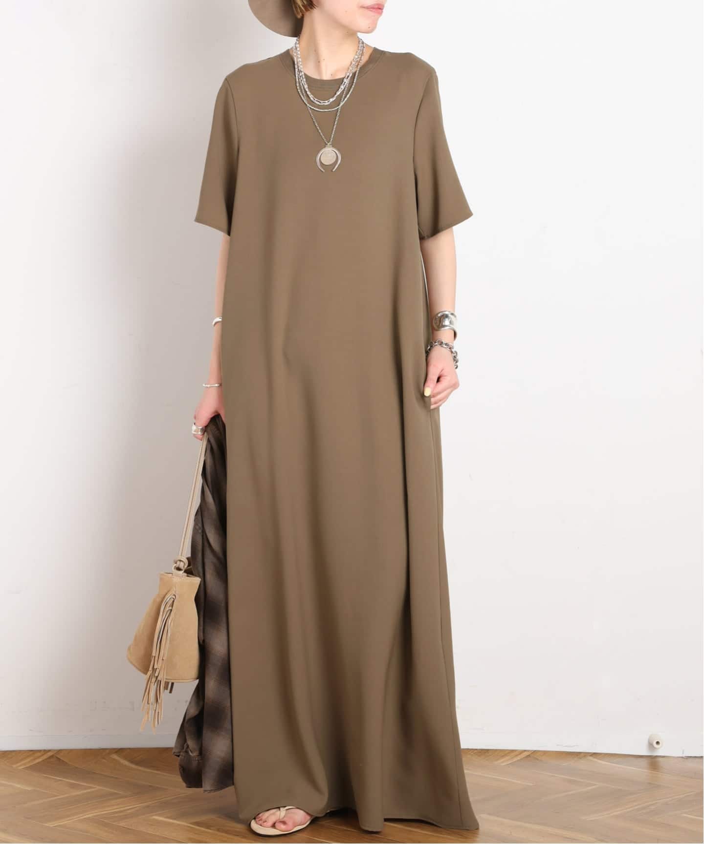 体が泳ぐようなリラックスして着られるシルエットながら、程良くコンパクトな衿ぐりとマキシ丈のバランスだからこそ1枚でスタイルが決まります。