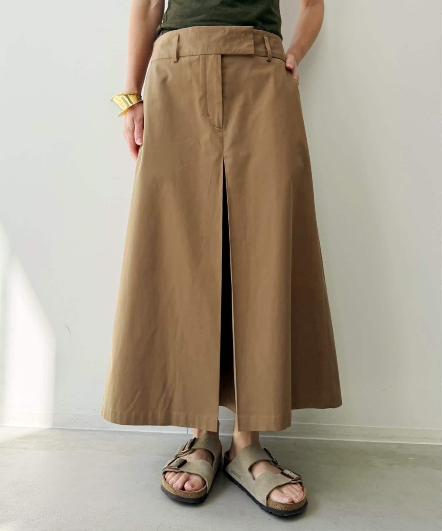 前後に入ったプリーツが歩くたび動きを生み、ハリのある素材に軽やかさをプラスしてくれます。