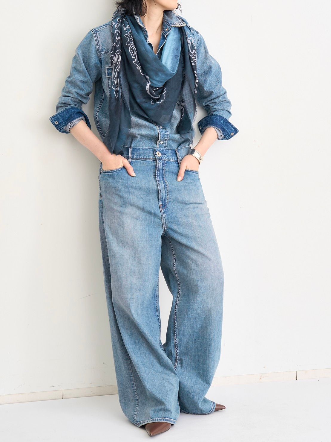 メンズライクなシルエットがこなれ感たっぷりなワイドデニム。暑い夏でも快適に過ごせるよう、加工に耐えられるギリギリの薄さの生地にこだわりました。