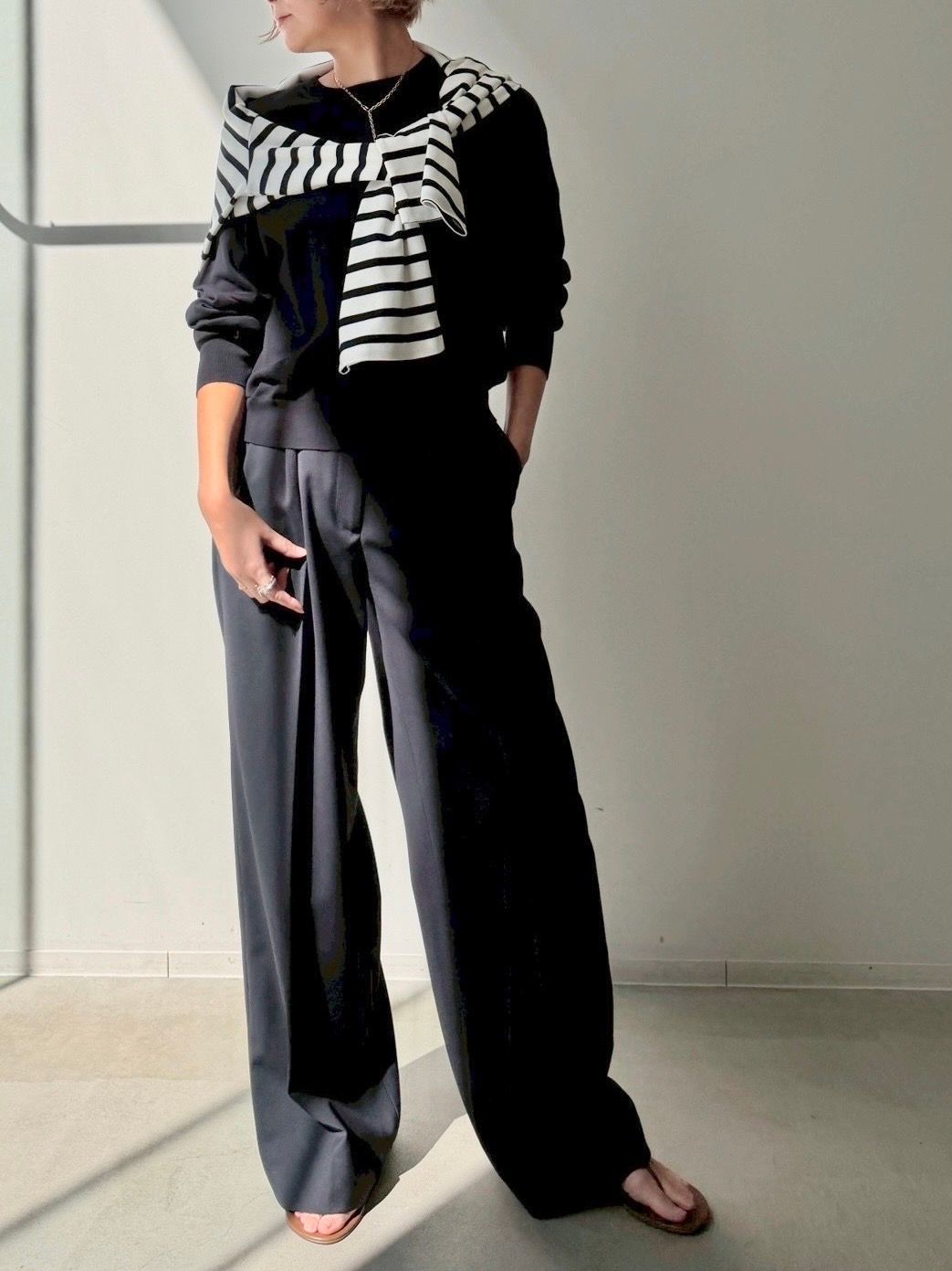 何度もオーダーしている定番のワイドパンツは美しいシルエットが魅力。