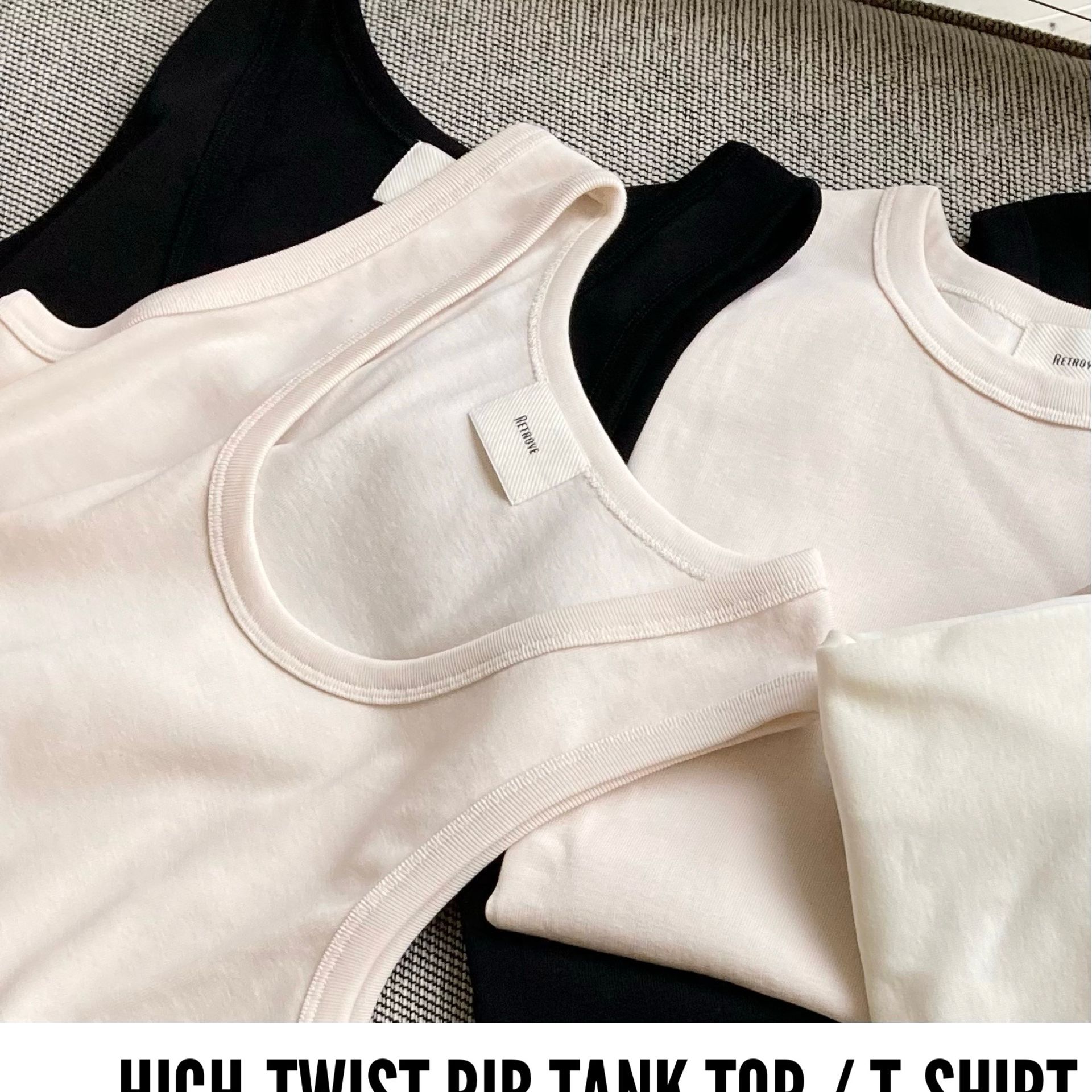T-shirt_RETROV_¥18,700 / Tank top_RETROV_¥15,400 Shop〉 販売中、Online〉 3/11(水)19:00~発売予定