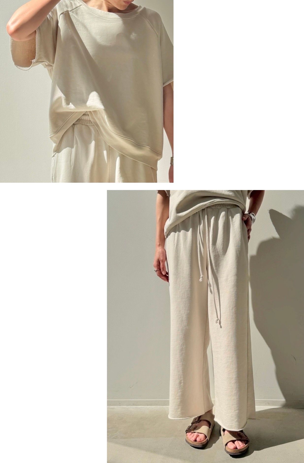 セットアップはもちろん、カラーを合わせたカットソーとワントーンで着こなすのもおすすめ!