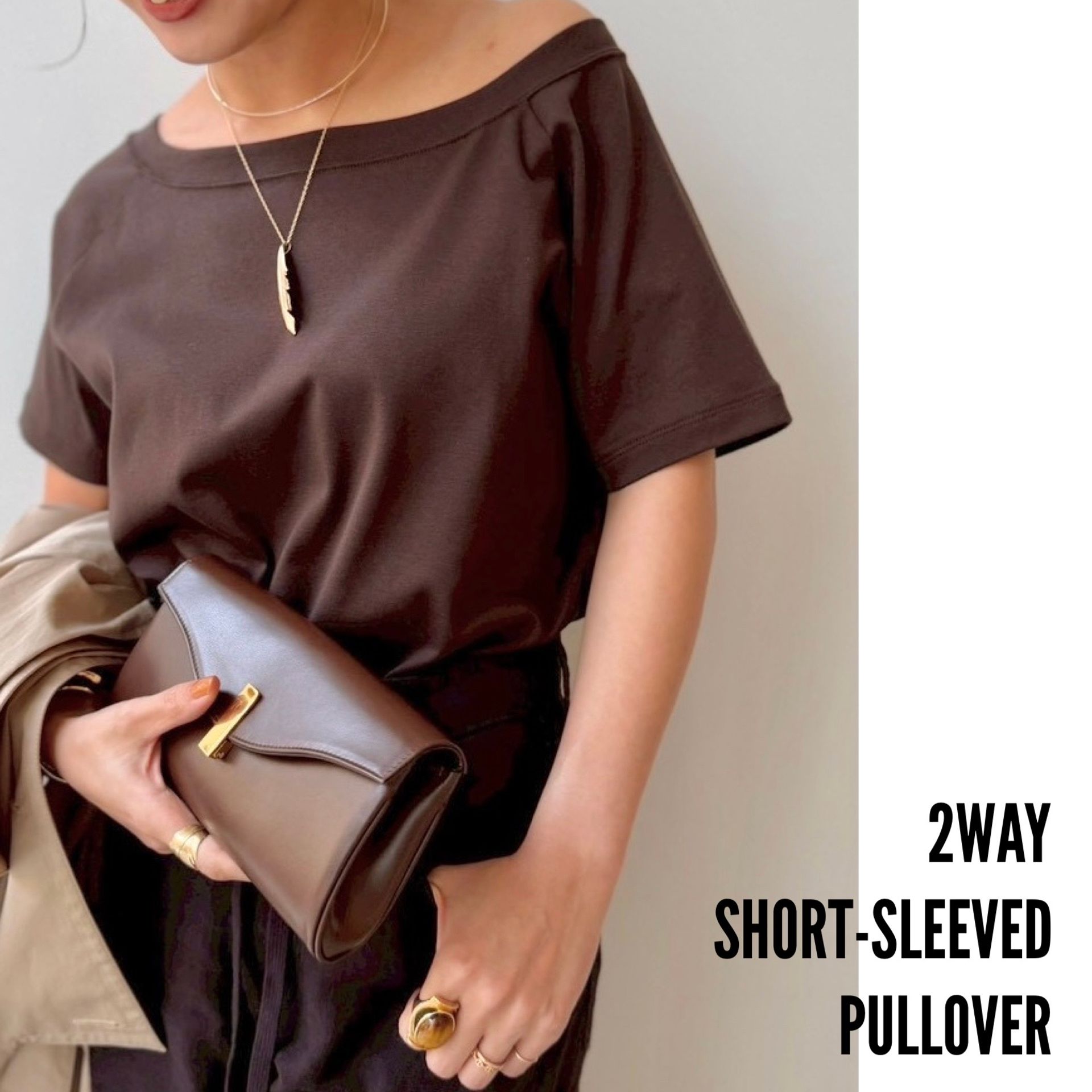 そのままでも肩を落としても、2WAY以上の着方で楽しめるデザインTシャツ。自然な光沢感のある生地はしっとりと滑らかな肌触りが魅力です。