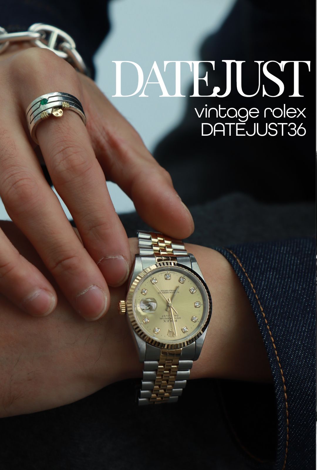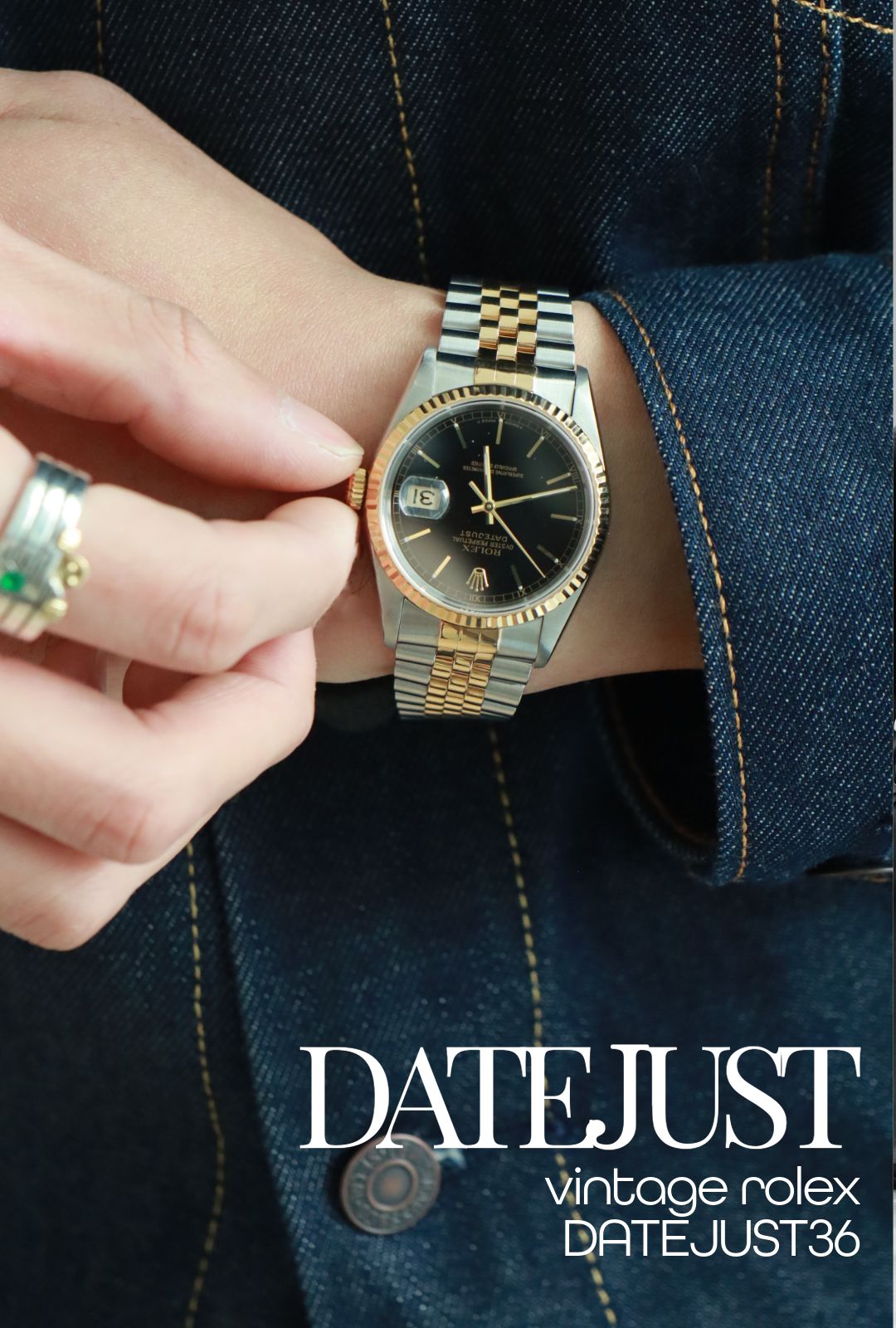 インディゴデニムに合わせる温かみのあるクラシック。インディゴの深い色味とゴールドの温かみが美しく調和し、シンプルな装いに洗練された奥行きを生む確かな名品。
