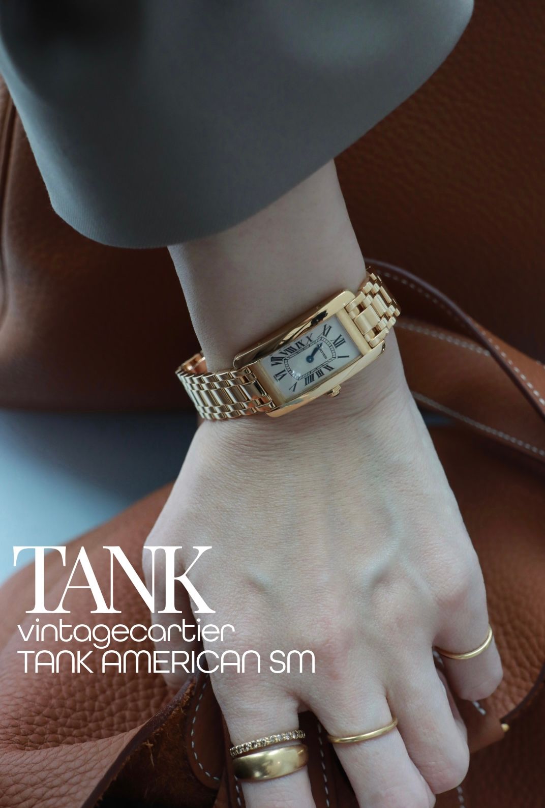 春のトラッドを、よりモダンに仕上げる一本。トラッドに仕上げたスタイル、その手元にはブレスレット感覚でさらりと着けられるヴィンテージのタンクフランセーズSMを。ジュエリーのように自然に腕元に溶け込み、上質な輝きを添えてくれる。ふとした仕草の中で目を惹く存在感。