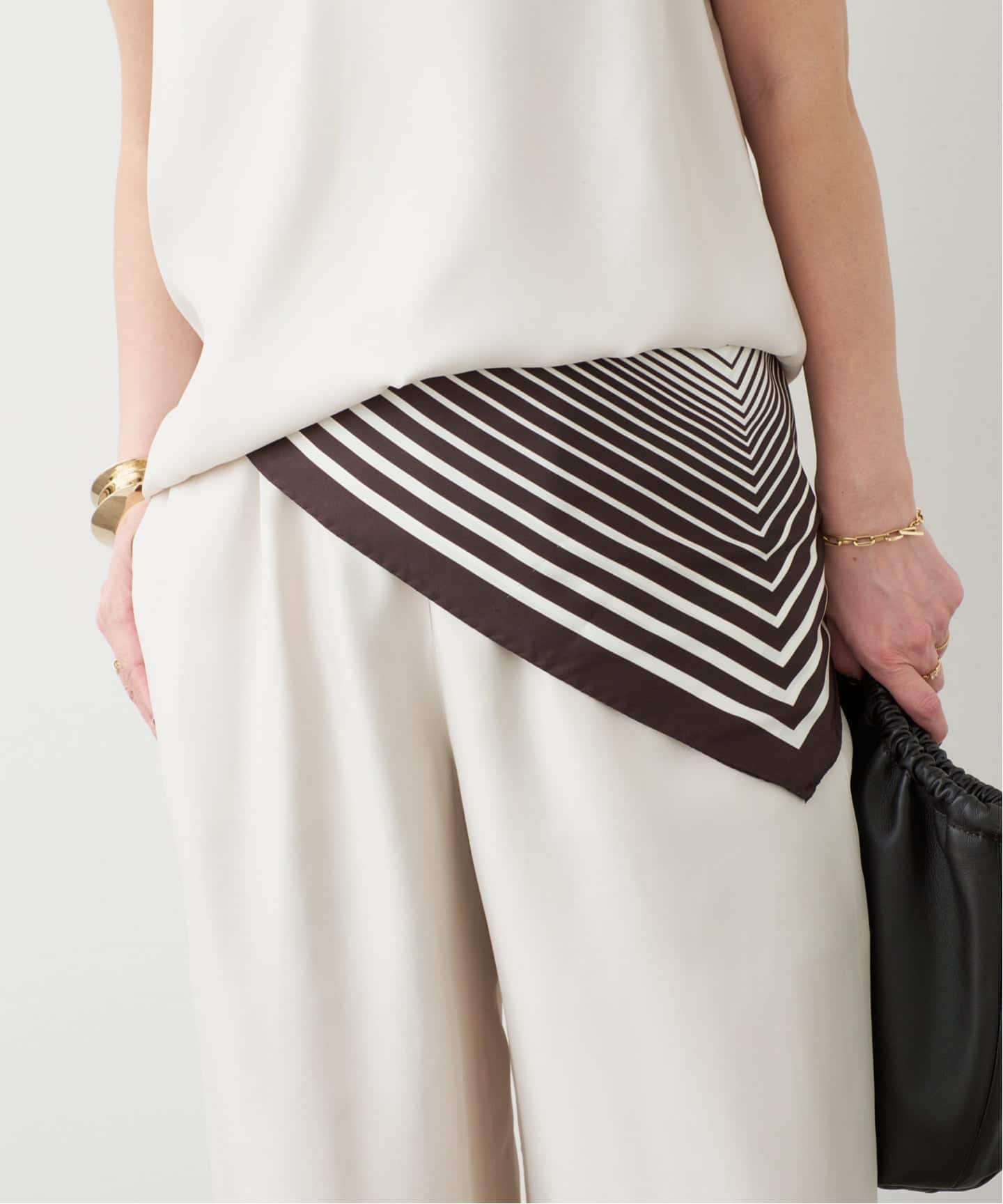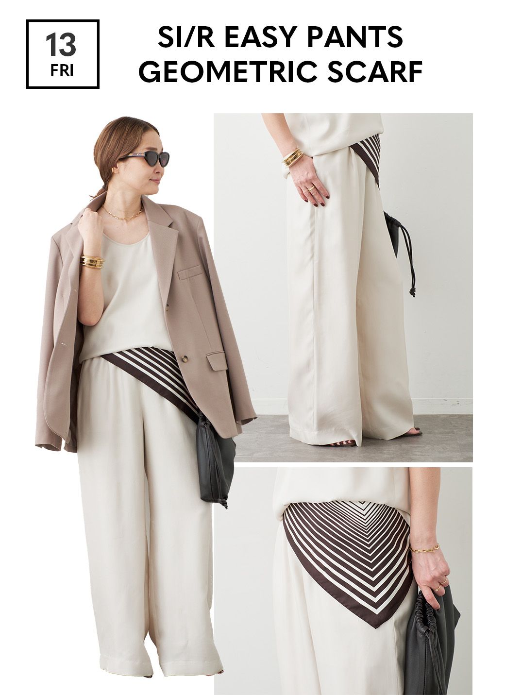 ジオメトリックスカーフでモダンなアクセントをプラスして。