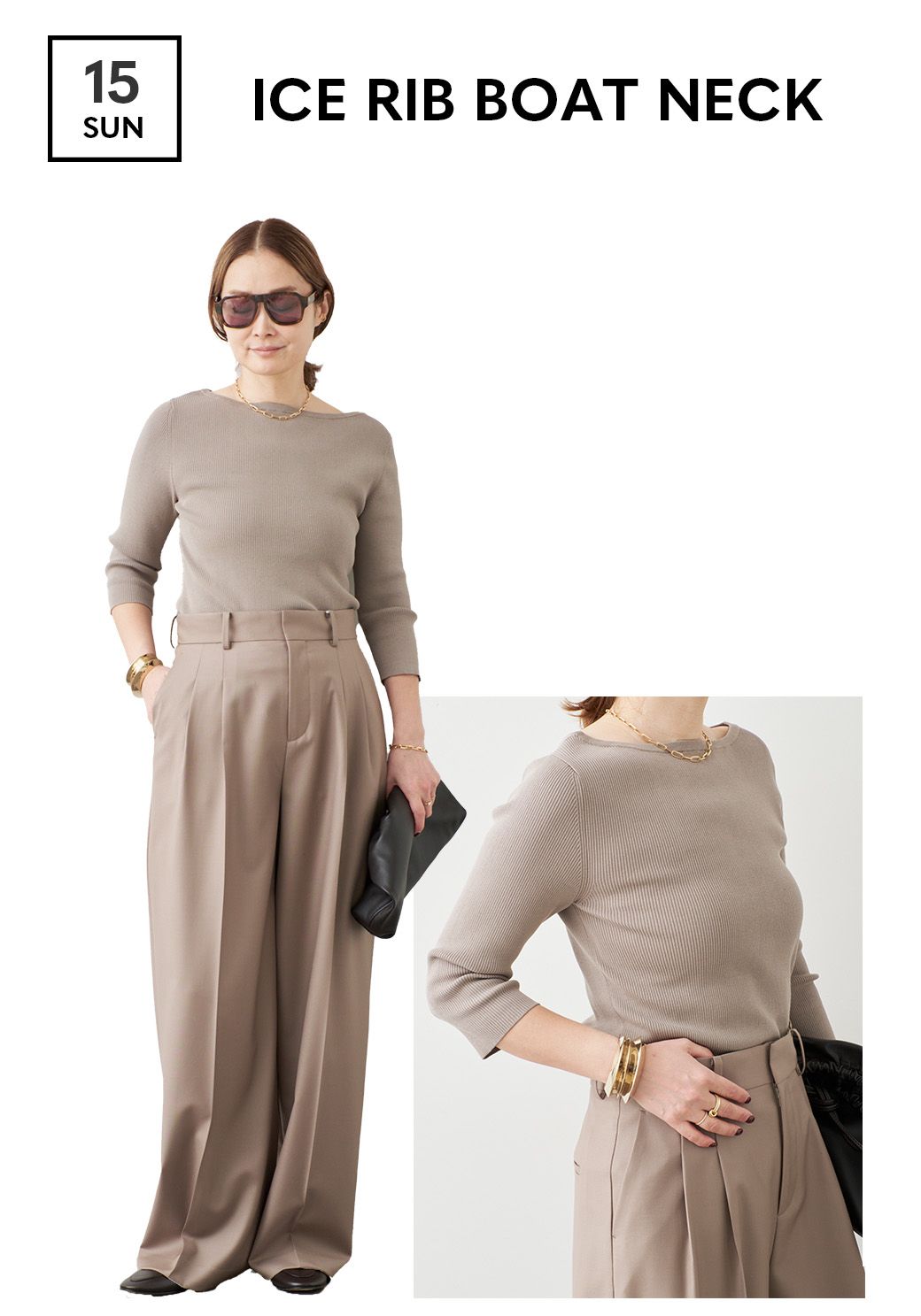 深いブラウンに丸みを帯びたシルエット。スタイルを問わないバランスのとりやすさはテイスト幅の広さも魅力。