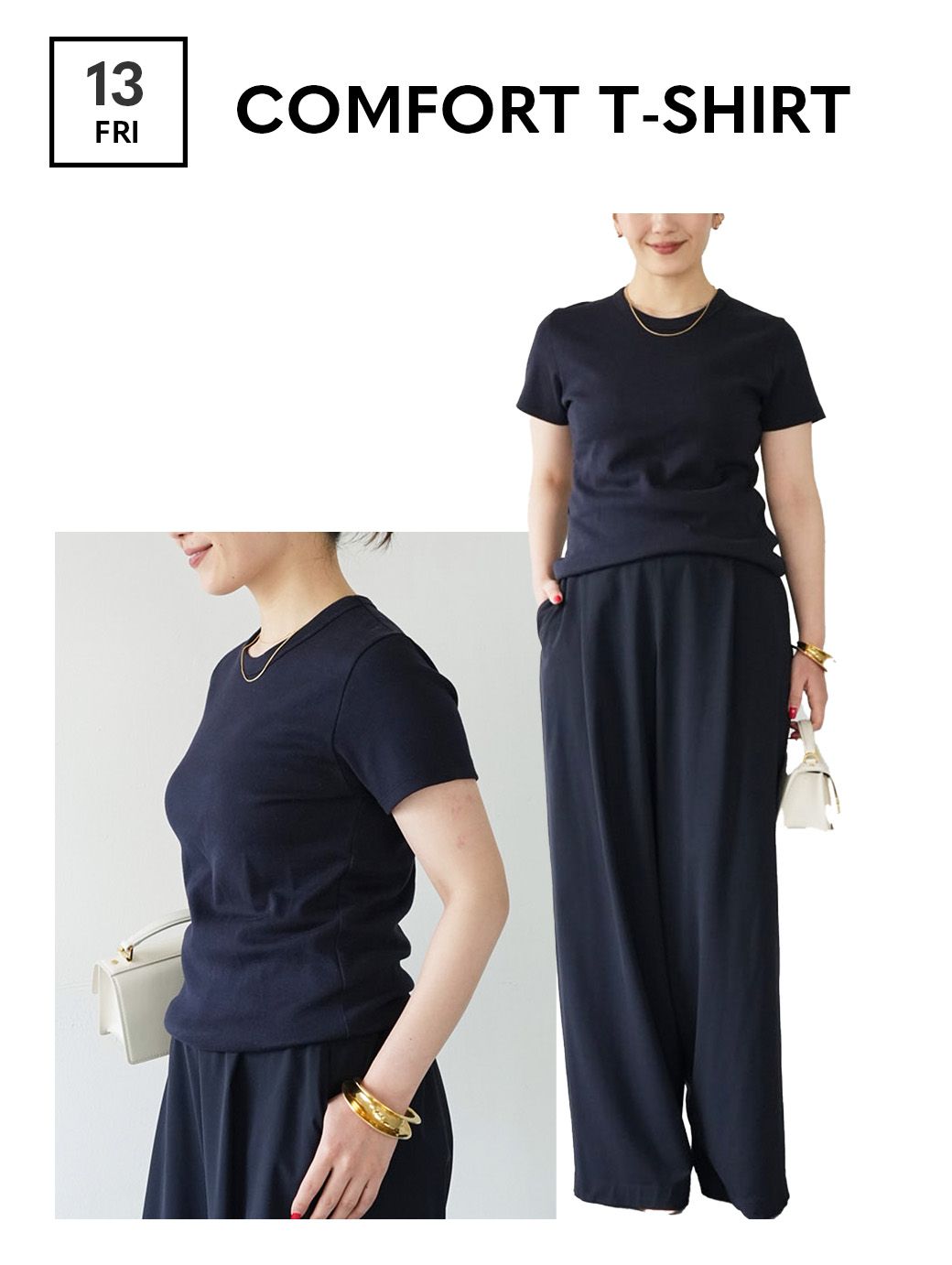 洗練されたスタイルに欠かせないネイビーに絶対的なホワイトの2色展開。