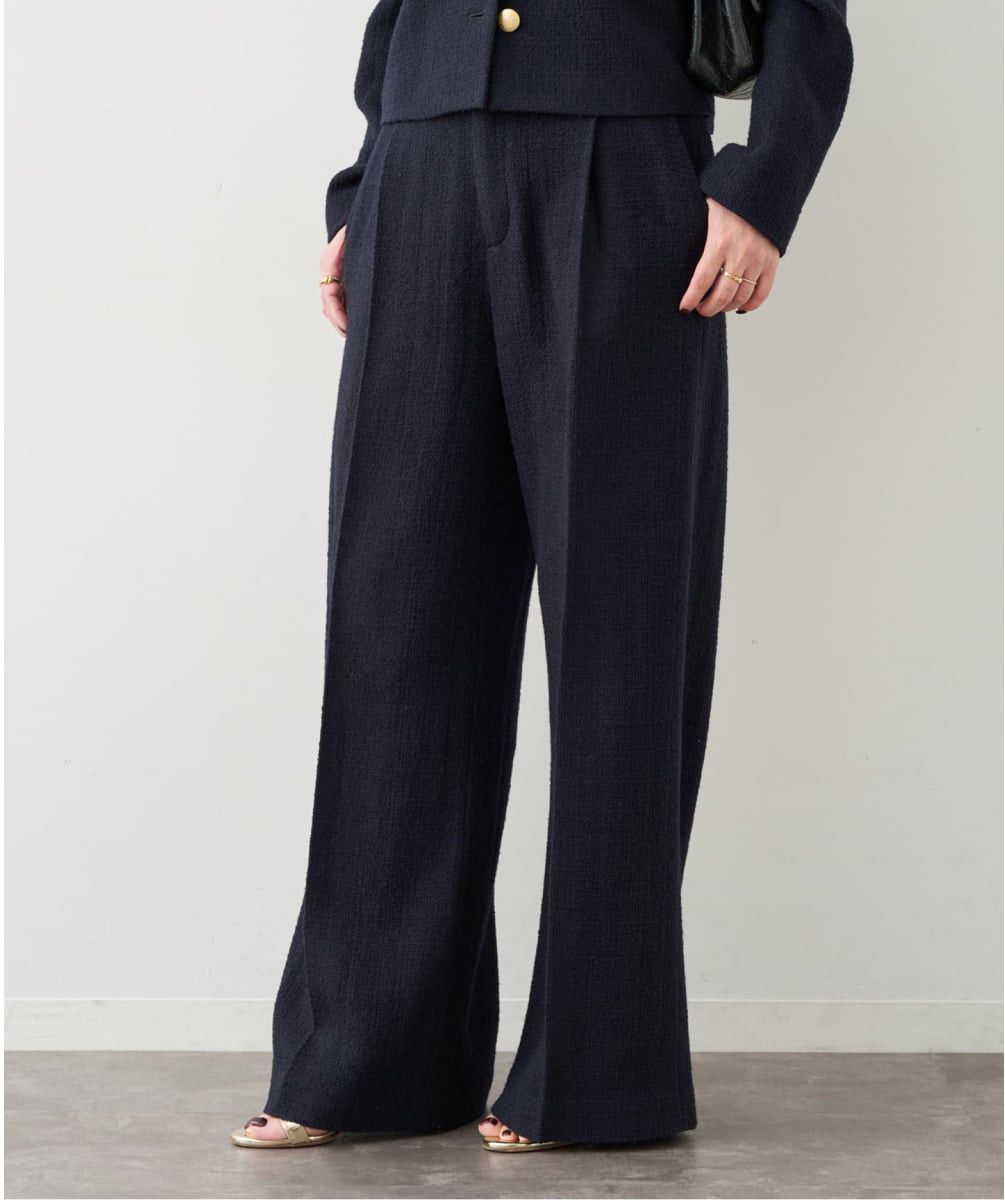 キュッとしたウエストにたっぷりワイドなメリハリが綺麗めトップスとも好相性。