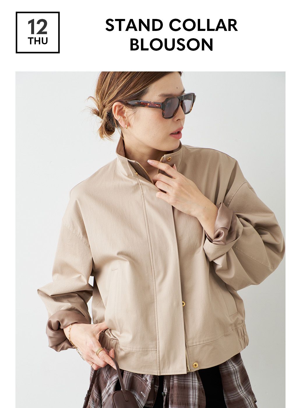 今シーズン気分のスタンドカラーブルゾン。