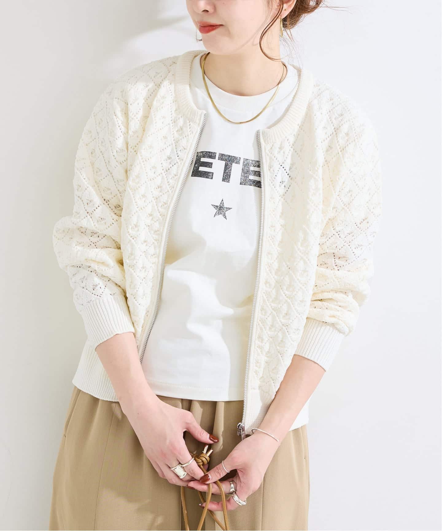 Tシャツから先々タンクトップやキャミソールに合わせて透け感を楽しめる羽織りアイテムです。