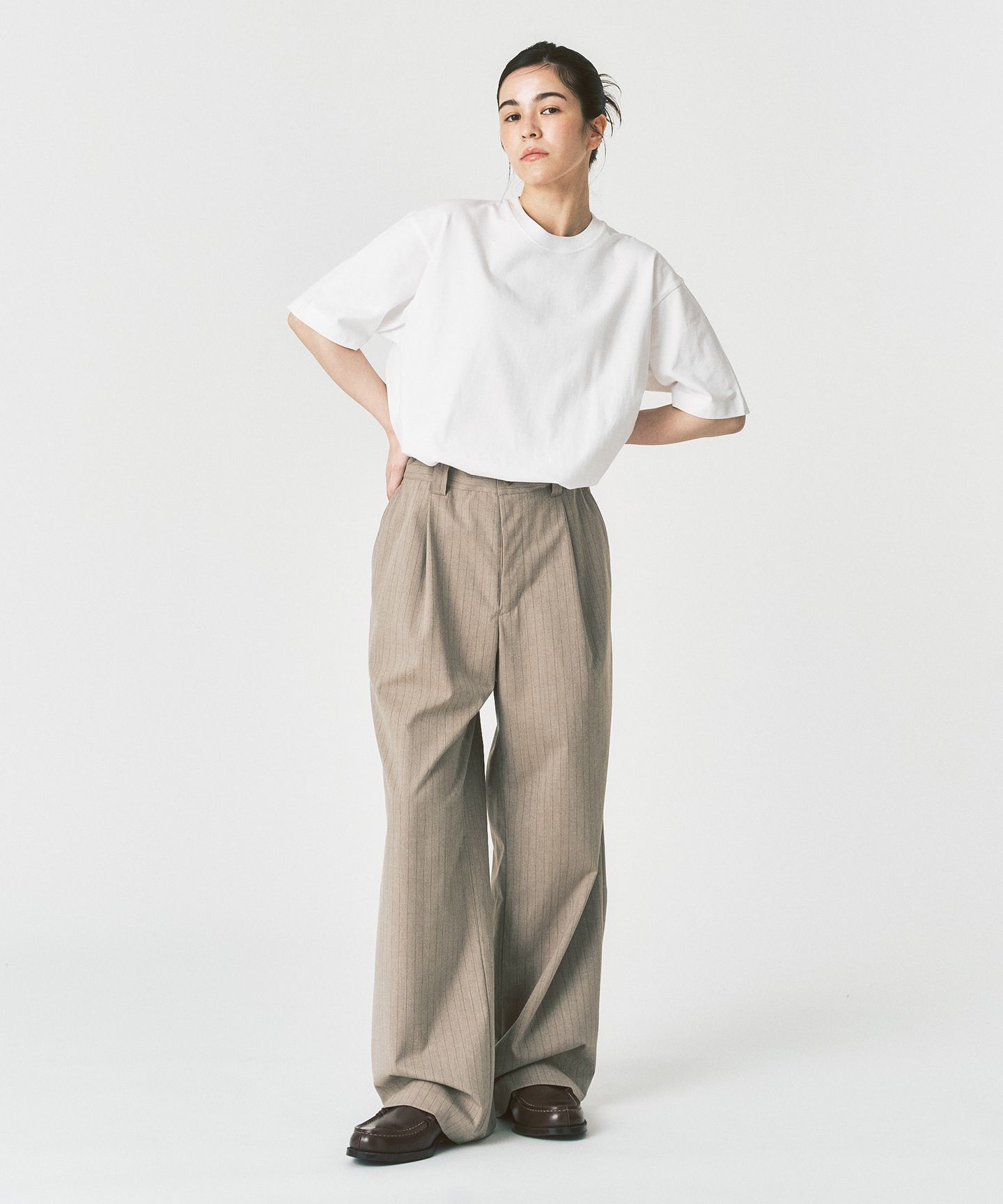 そのバランスをベースに、着丈・肩幅・袖丈・ネックラインなどをミリ単位で調整しました。身幅には程よくゆとりを持たせながらも、だらしなく見えない絶妙なフィッティング。一枚で着ても様になり、シャツやジャケットのインナーとしても使いやすいバランスに仕上げています。