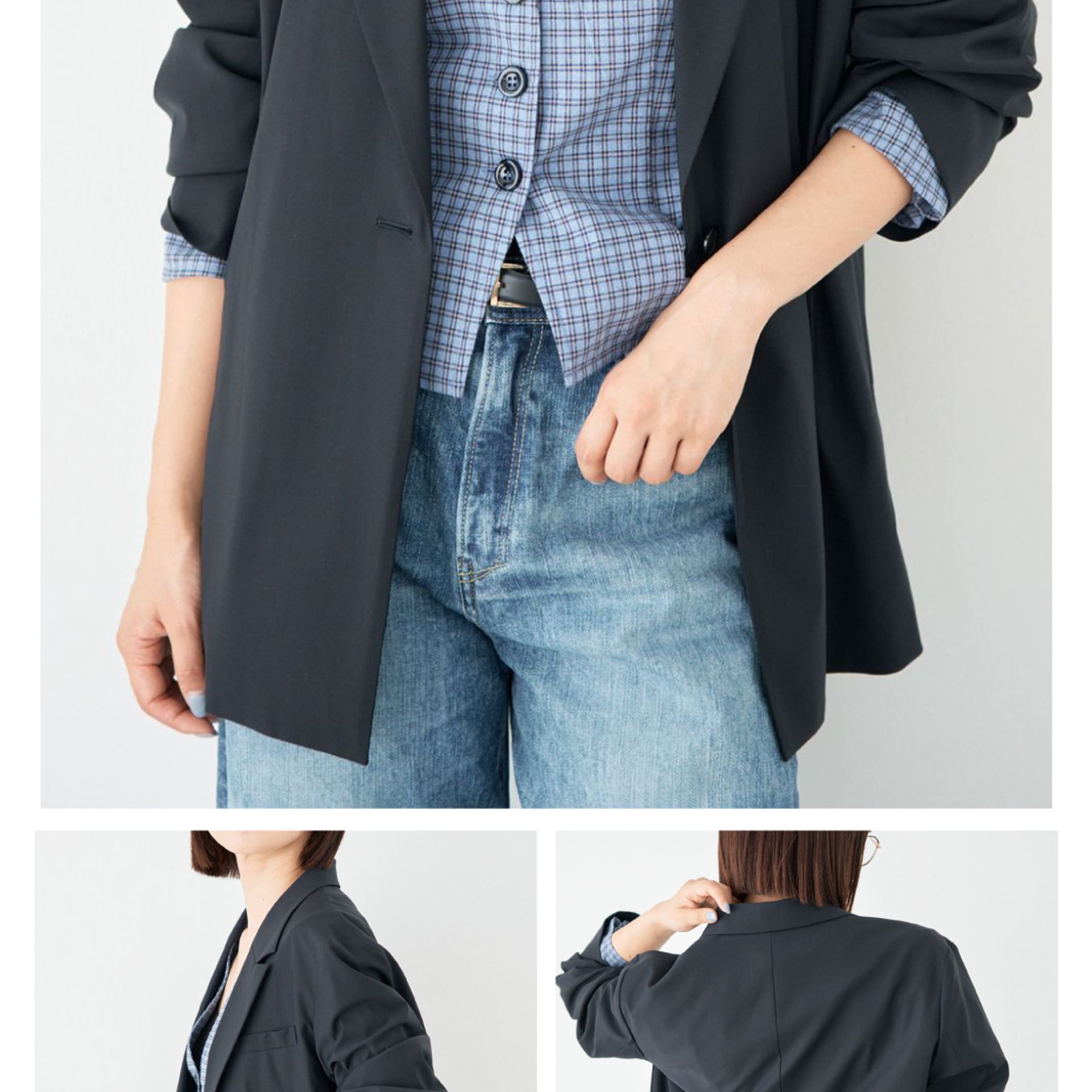構築的なシルエットと上品なボタン使いで、羽織るだけでスタイリングを品よく引き締めてくれます。