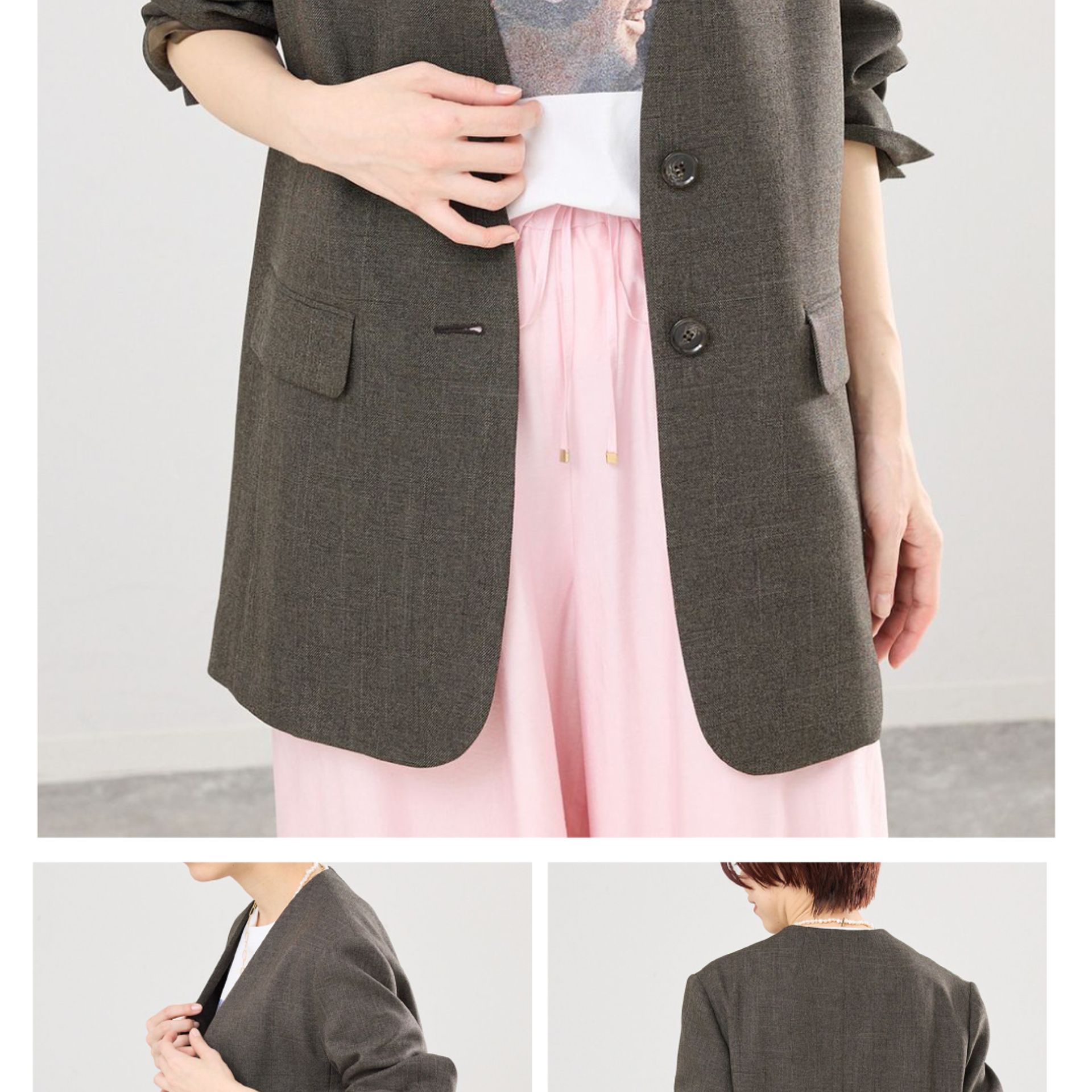 同素材のパンツやジレとのセットアップも楽しめて、かっちりしすぎないバランスが魅力です。
