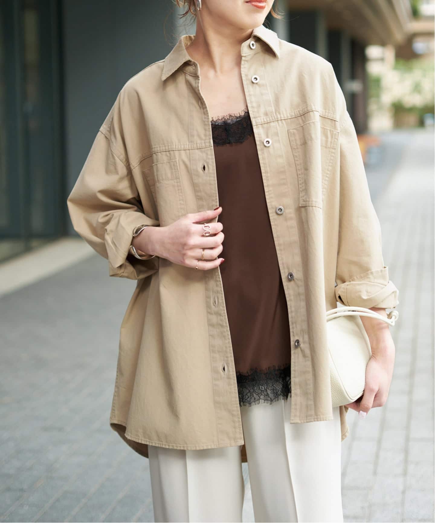インナーとのレイヤードも楽しめる一枚です。