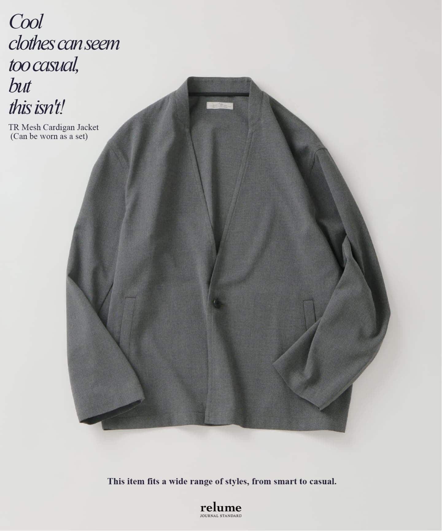 カーディガンの気軽さとジャケットのきちんと感を兼ね備えています。
